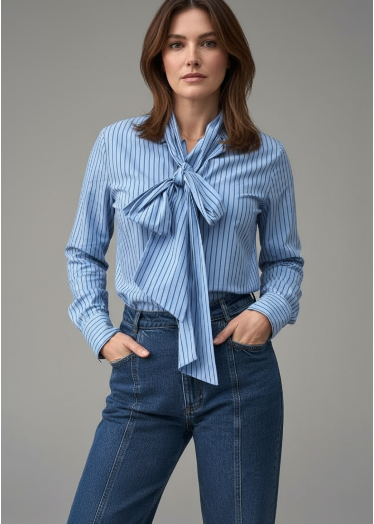 Lily Stripe Bow Shirt - Blue