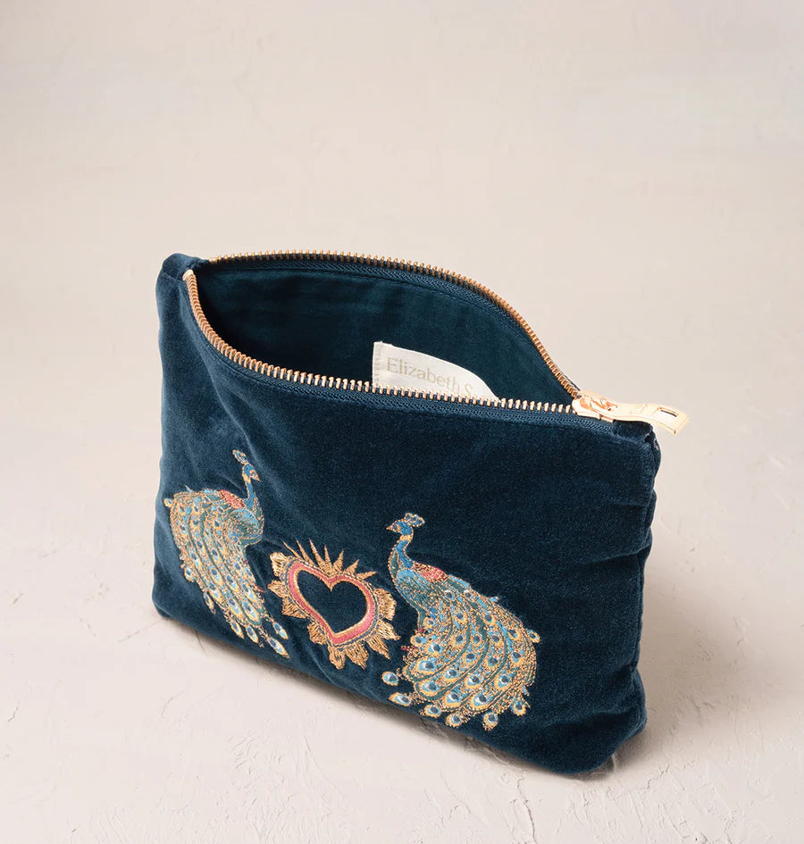 Peacock Floral Mini Pouch - Ink Blue