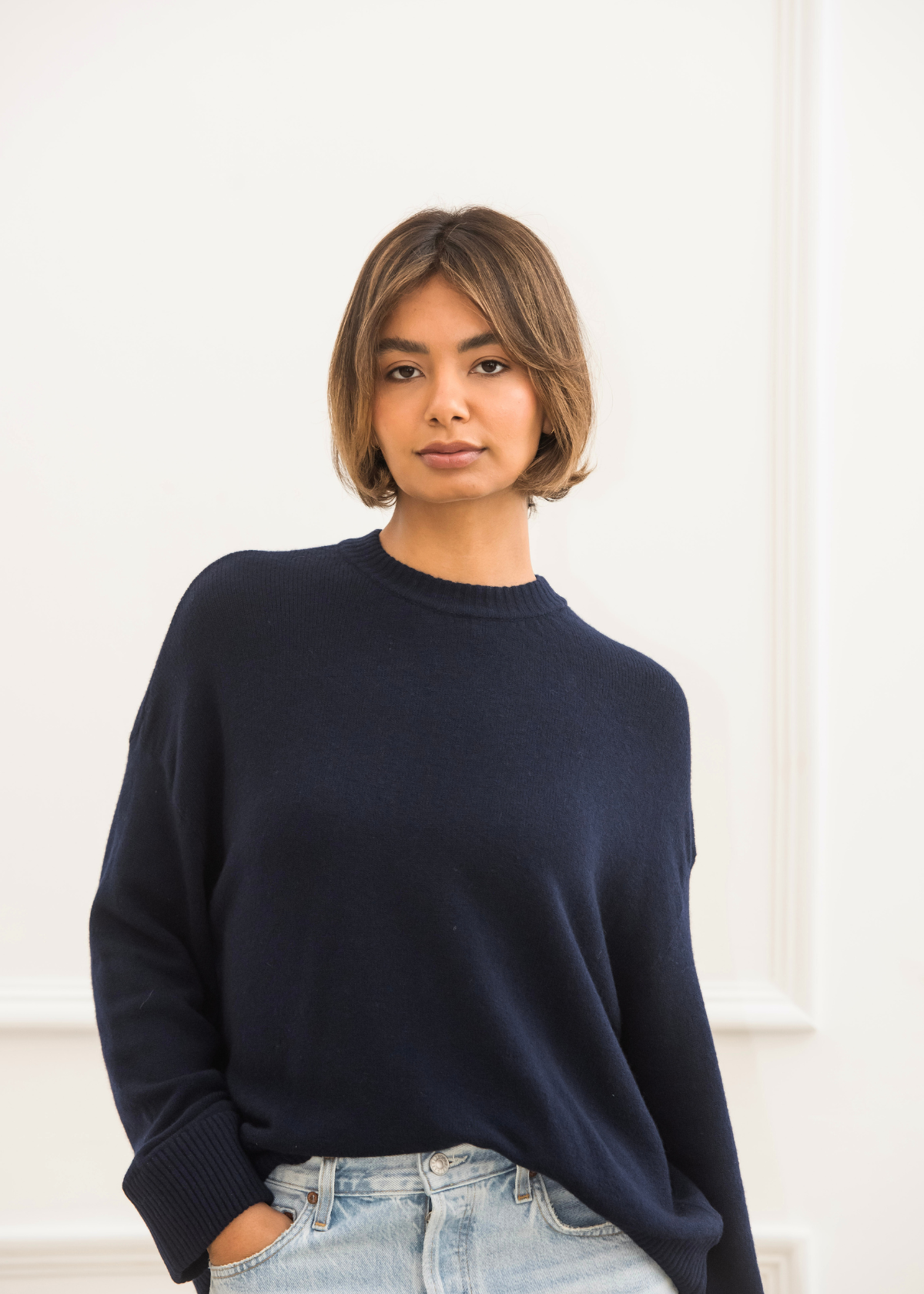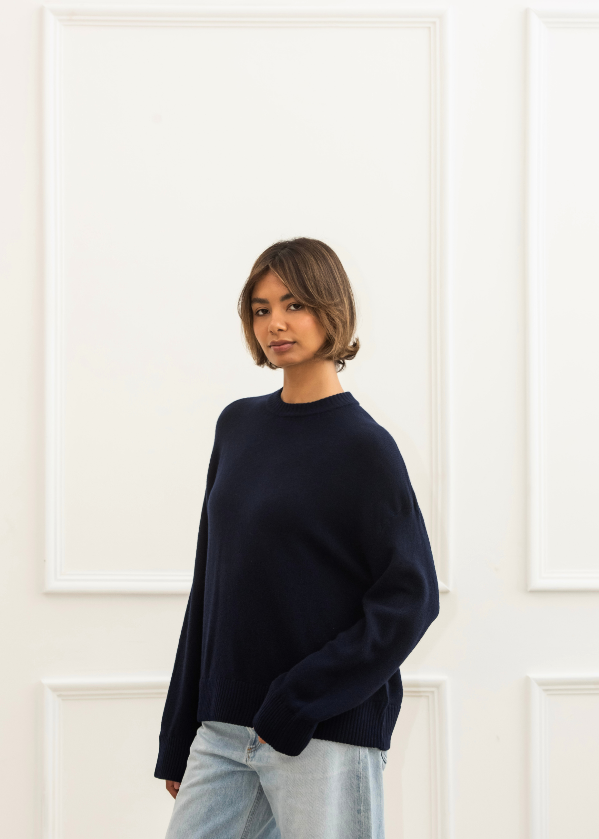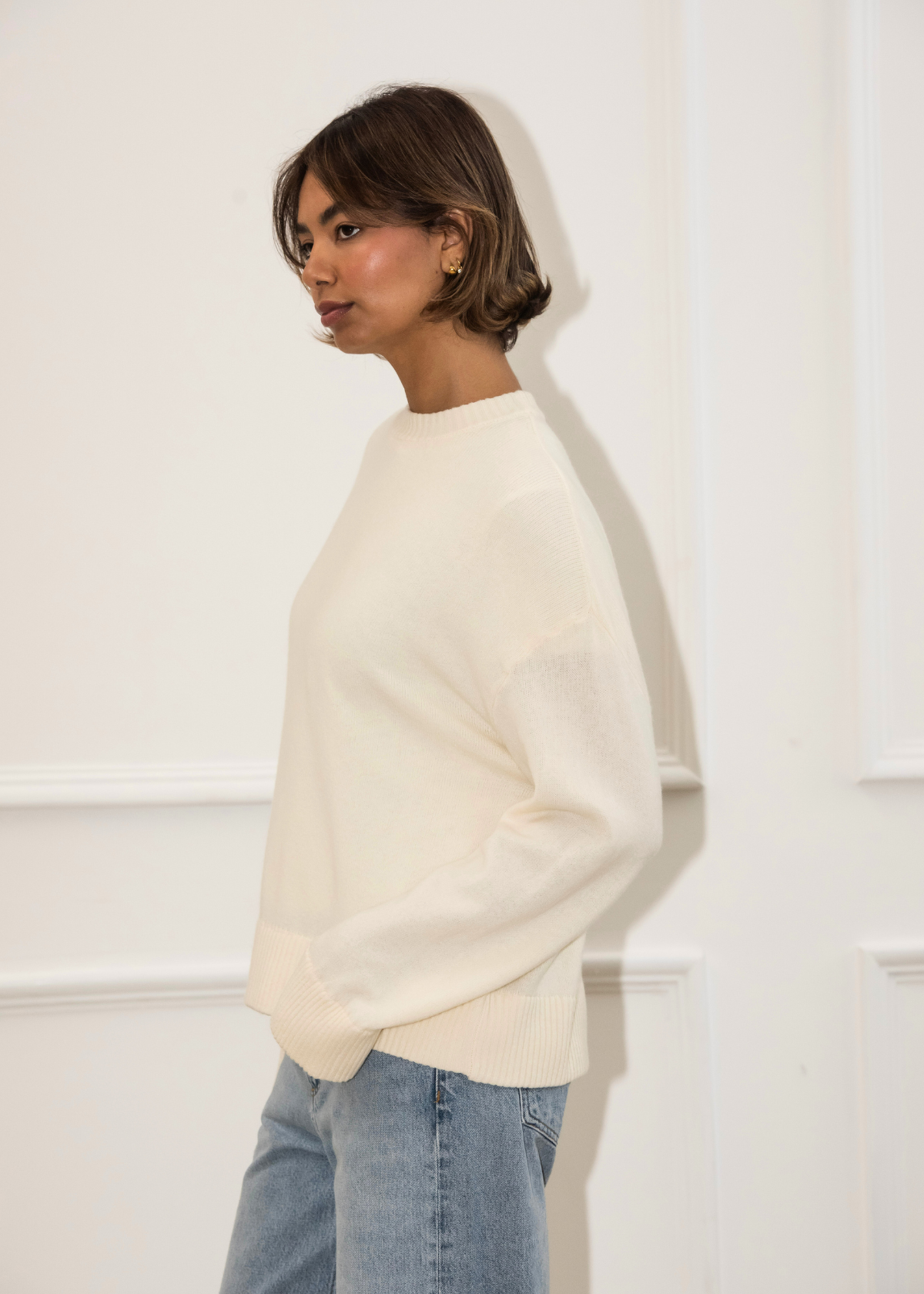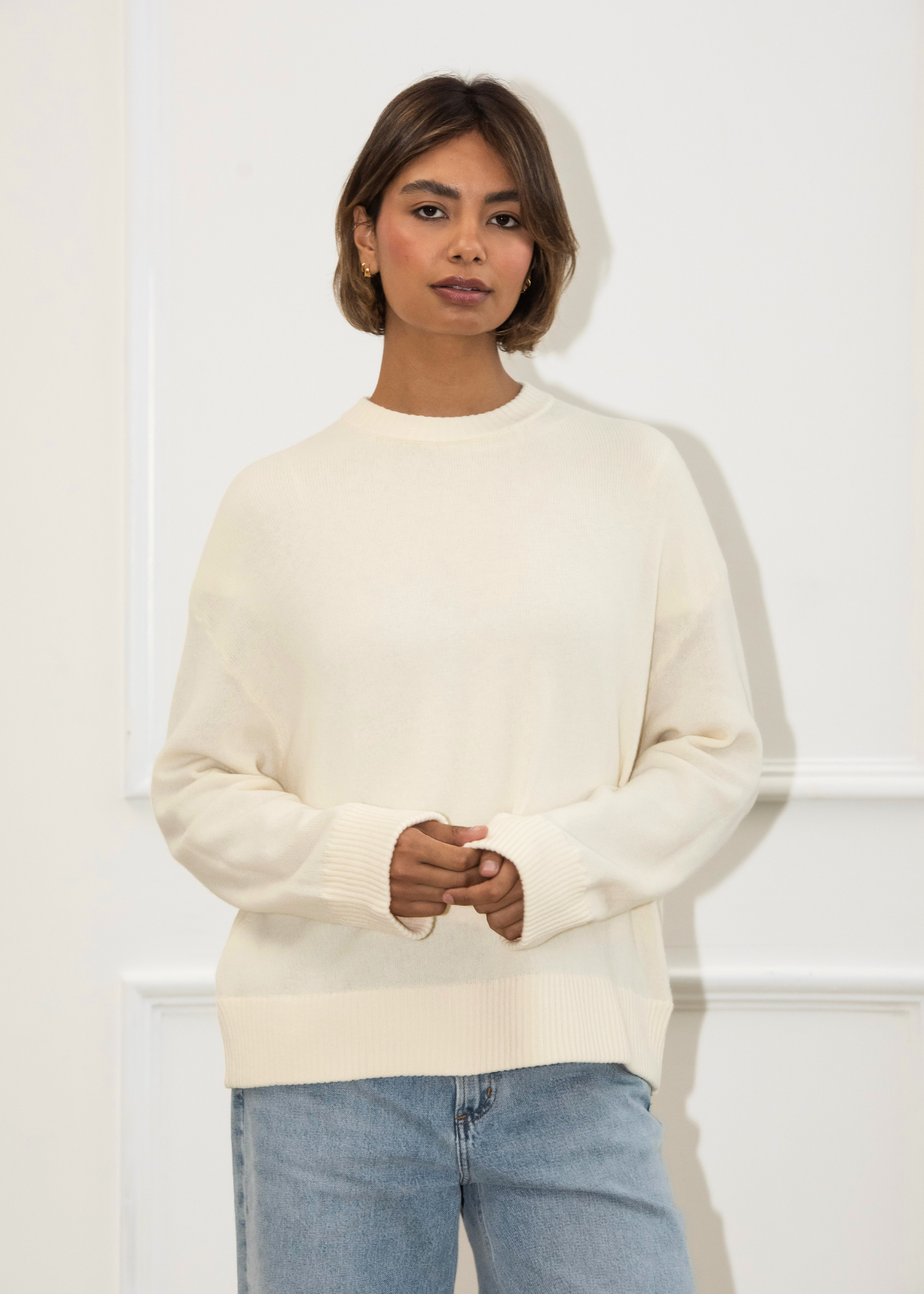 Tipped Little Stripe Crew Jumper - Lemon/Cream