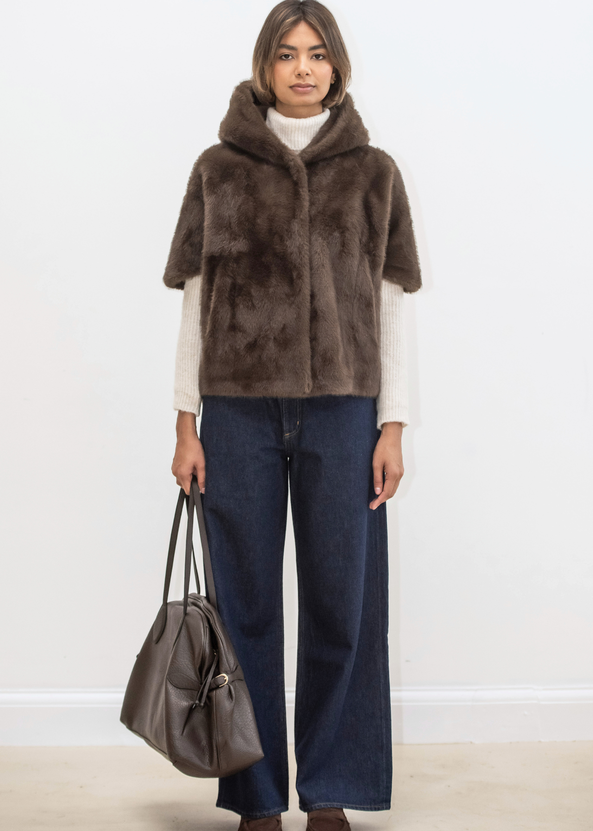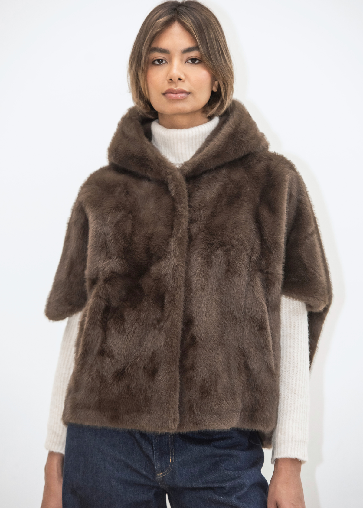 Leonie Faux Fur Cape - Brown