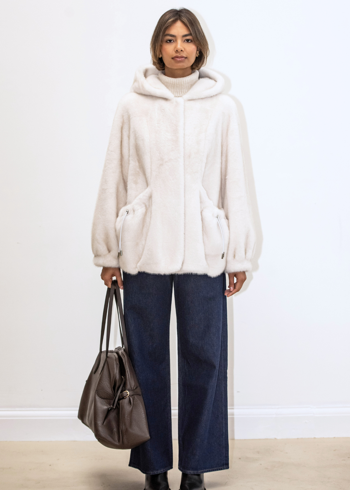 Selena Faux Fur Coat - Ecru