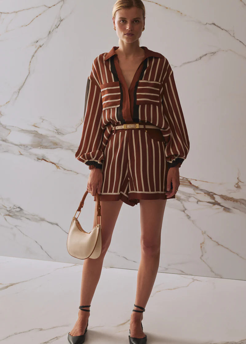 Trista Shorts - Cherrywood Stripe
