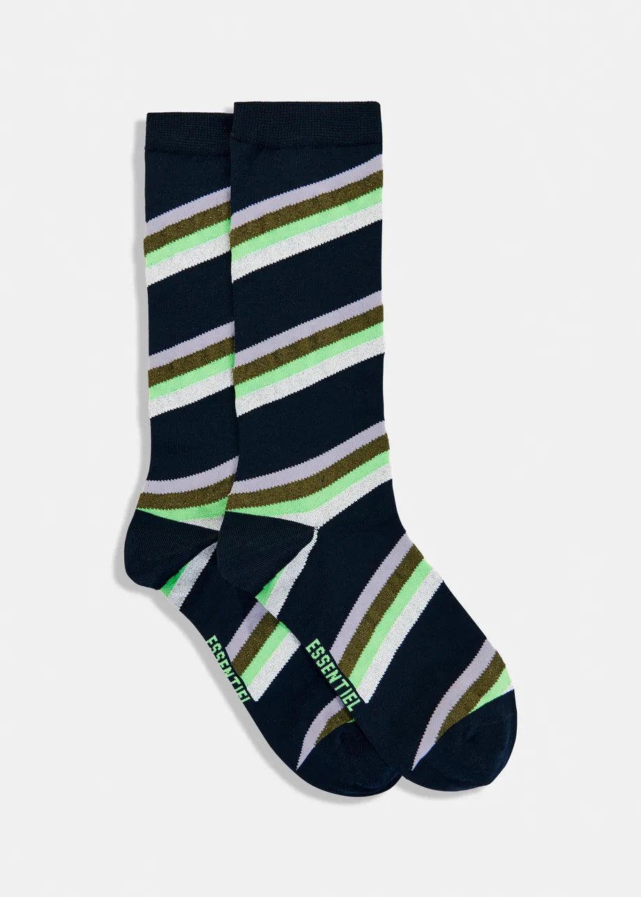 Mid-length socks featuring fun, colourful stripes, some accented with glittery Lurex. Finished with comfortable stretch trims, these socks bring a touch of fun and shimmer to any outfit.