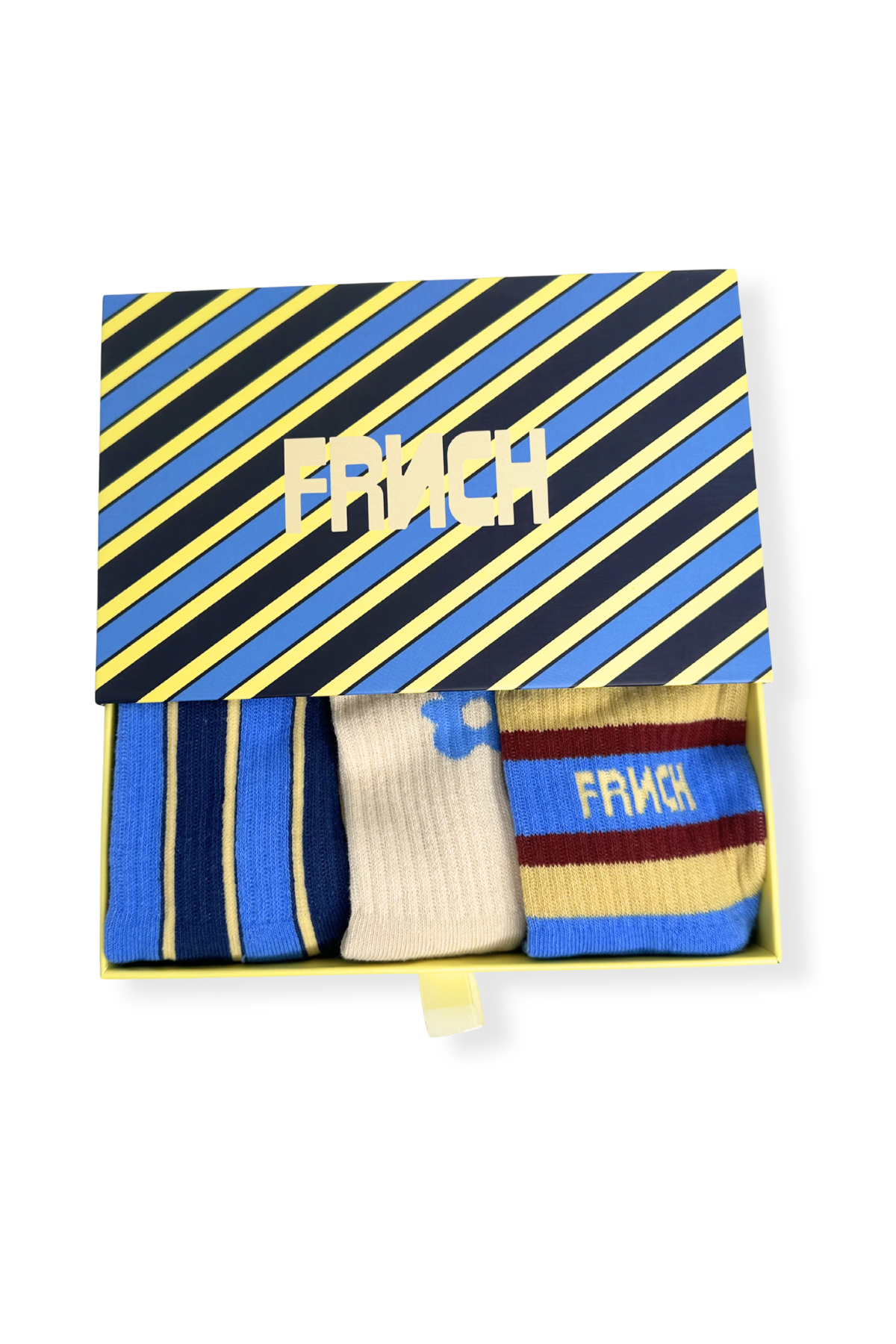 Soft and comfortable socks. They come in a pack of 3 pairs of socks; Blue stripes, white with blue heart, blue and yellow Stripes.