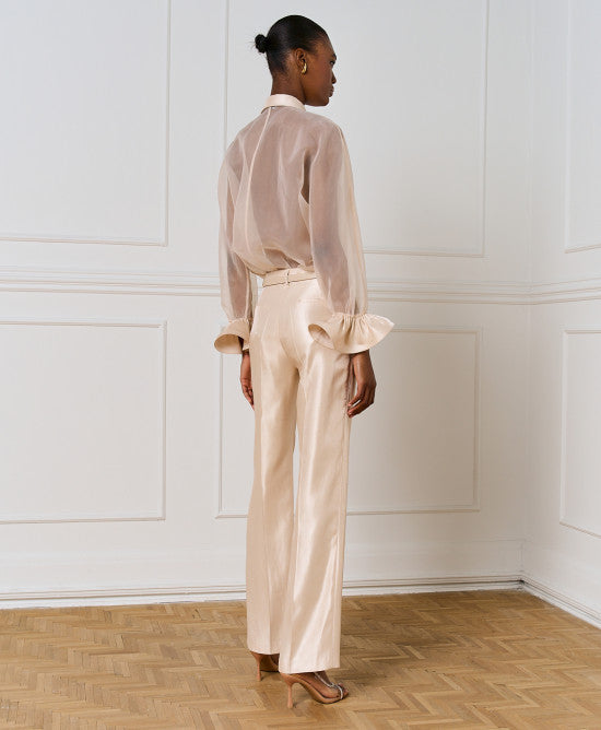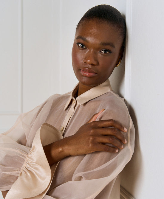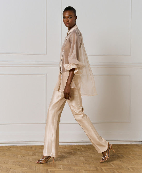 Organza Shirt with Ruffled Cuffs - Vanilla