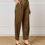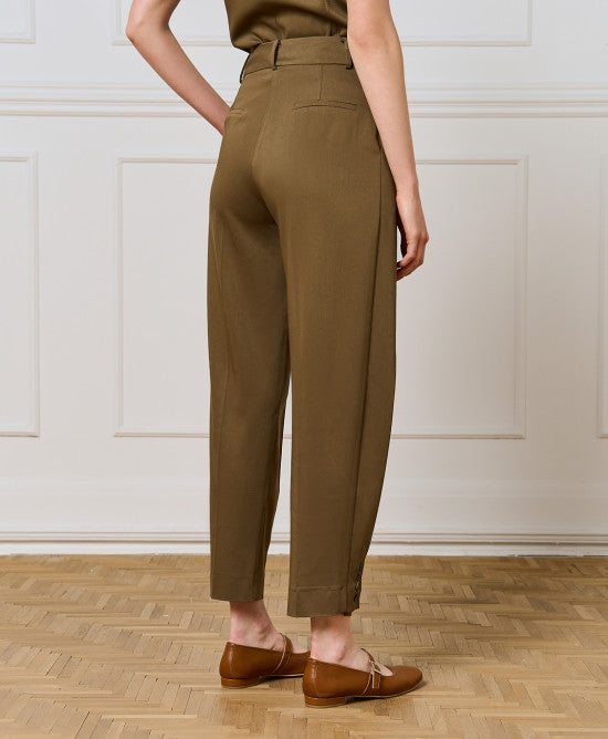 Carrot-fit trousers with pleats, side pockets and buttoned hem. They feature belt loops and front zip and button closure. A perfect choice for elegant all-day looks.