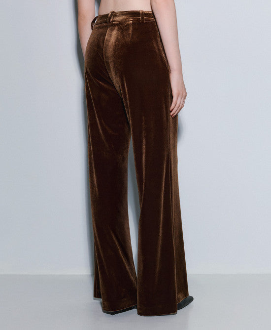 Velvet wide-leg trousers with side pockets and belt loops. Pair them with the matching velvet blazer from the brand Access for a lush look.