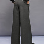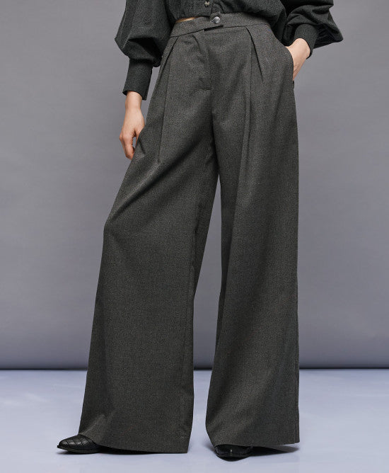 Wide-leg trousers with front pleats and side pockets. They feature a front button and zip closure. Choose them for elegant all-day looks.