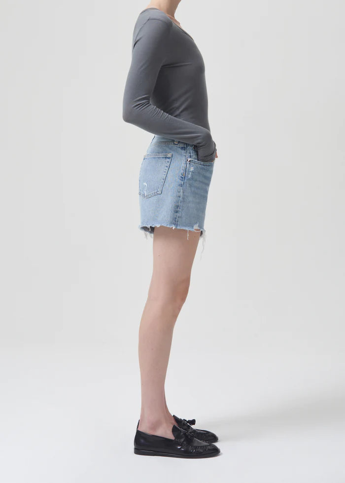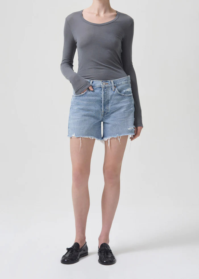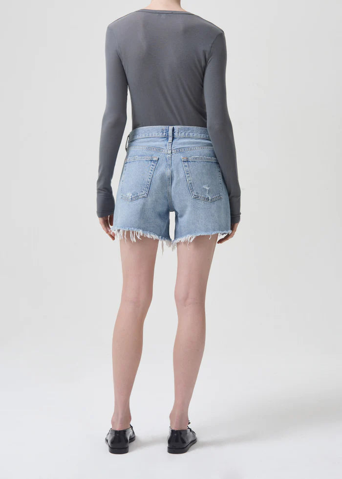 Inspired by Agolde's iconic Parker Short. Now designed with a slightly longer inseam for a more practical every day short. Featuring a relaxed high-rise with just enough room in the thighs for all day comfort. Crafted in their signature zero stretch cotton - this pair will only get softer with each wash while keeping its vintage appeal.