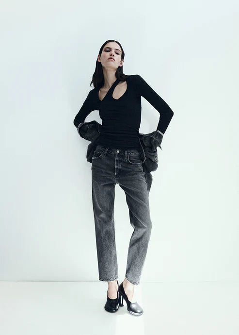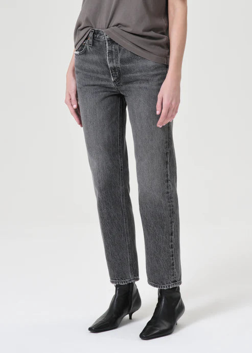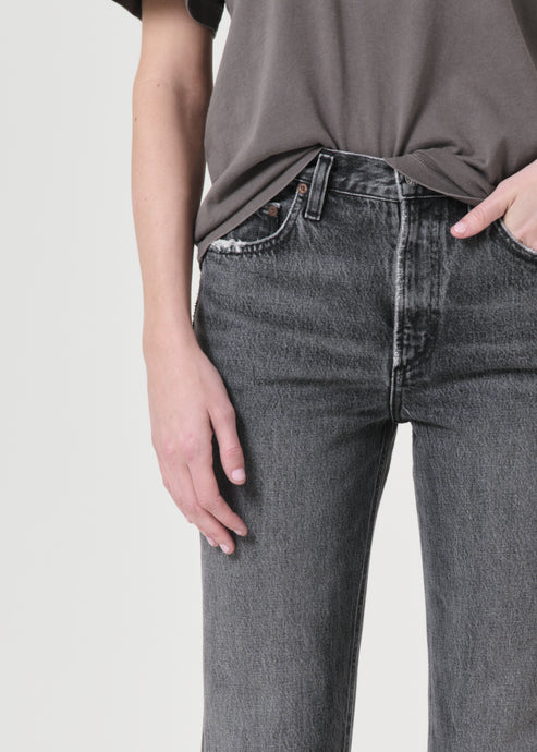Mid-rise vintage straight with an ankle-grazing inseam, designed with a flattering square top block.