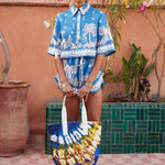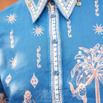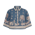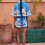 Cropped short with relaxed fit and short sleeves from Alemais. Gorgeous white print on blue.