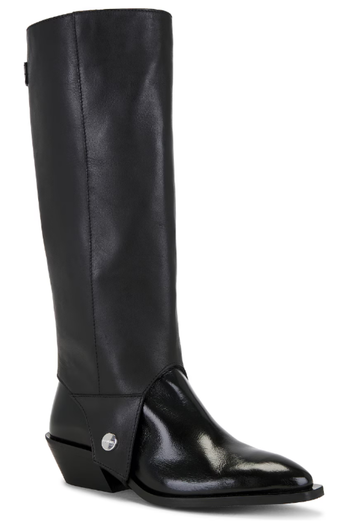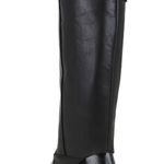 These versatile 2-part boots are crafted with a leather upper and grounded by a durable manmade sole. Designed with effortless pull-on styling, they feature a detachable 16-inch shaft that wraps neatly beneath the boot and secures with a metal stud button closure. A pointed round toe and block heel.