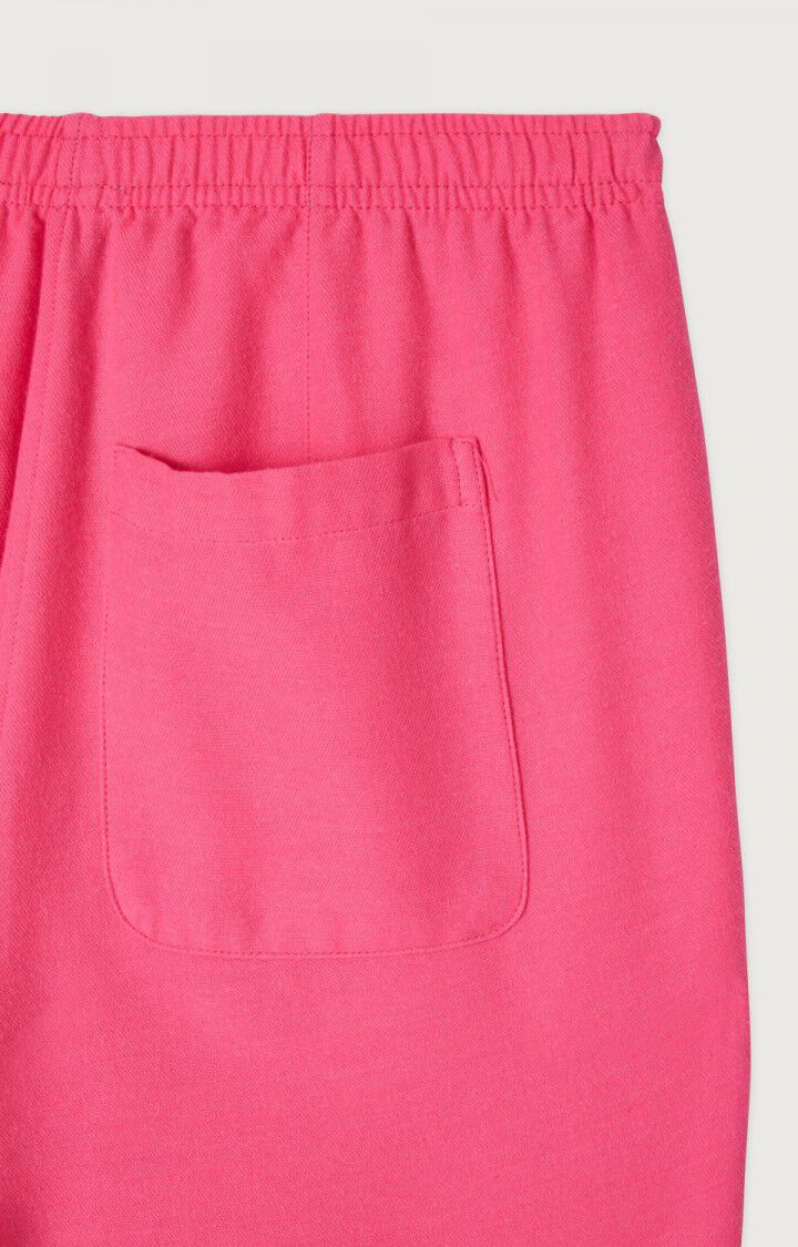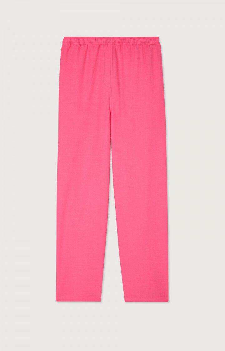Loose fit trousers with slightly tapered leg, elastic waist for comfort and two back pockets. The pair is made special by their bright fluo pink colour.