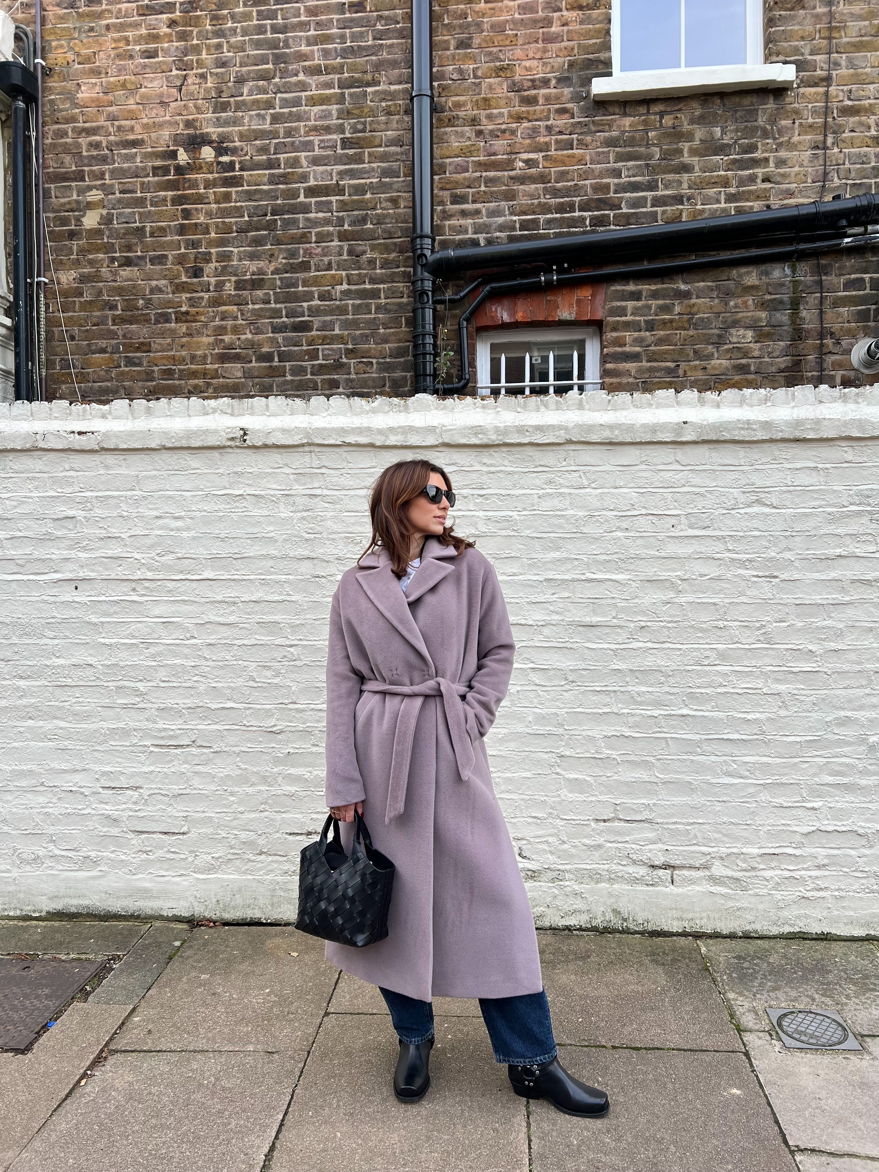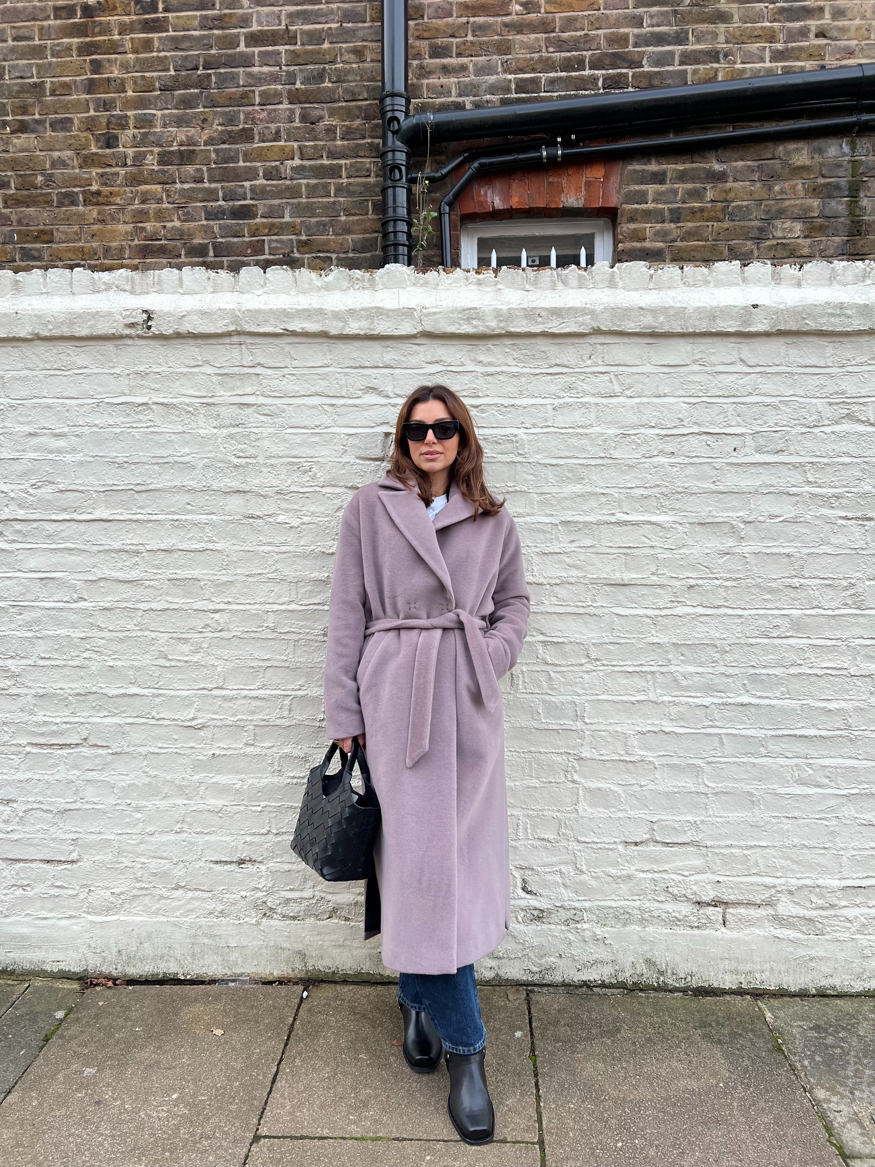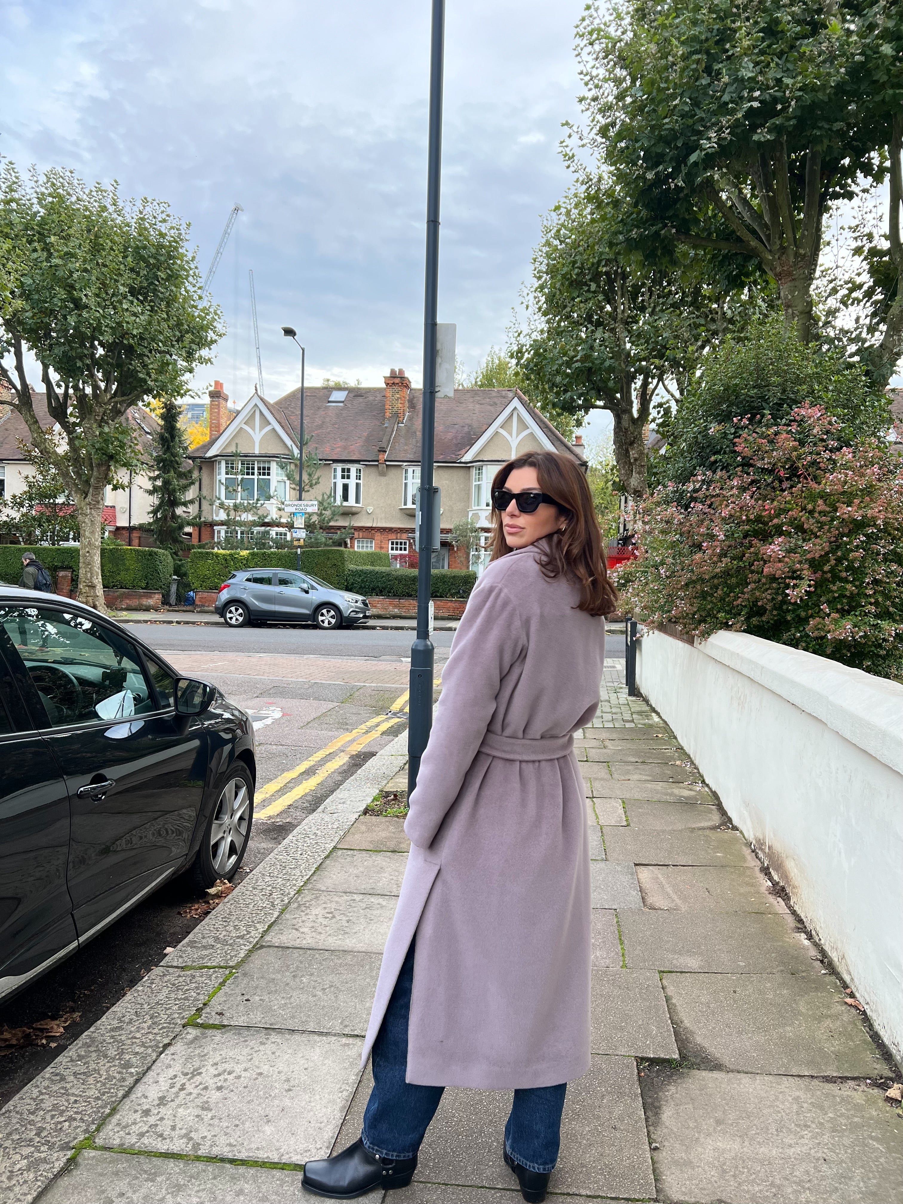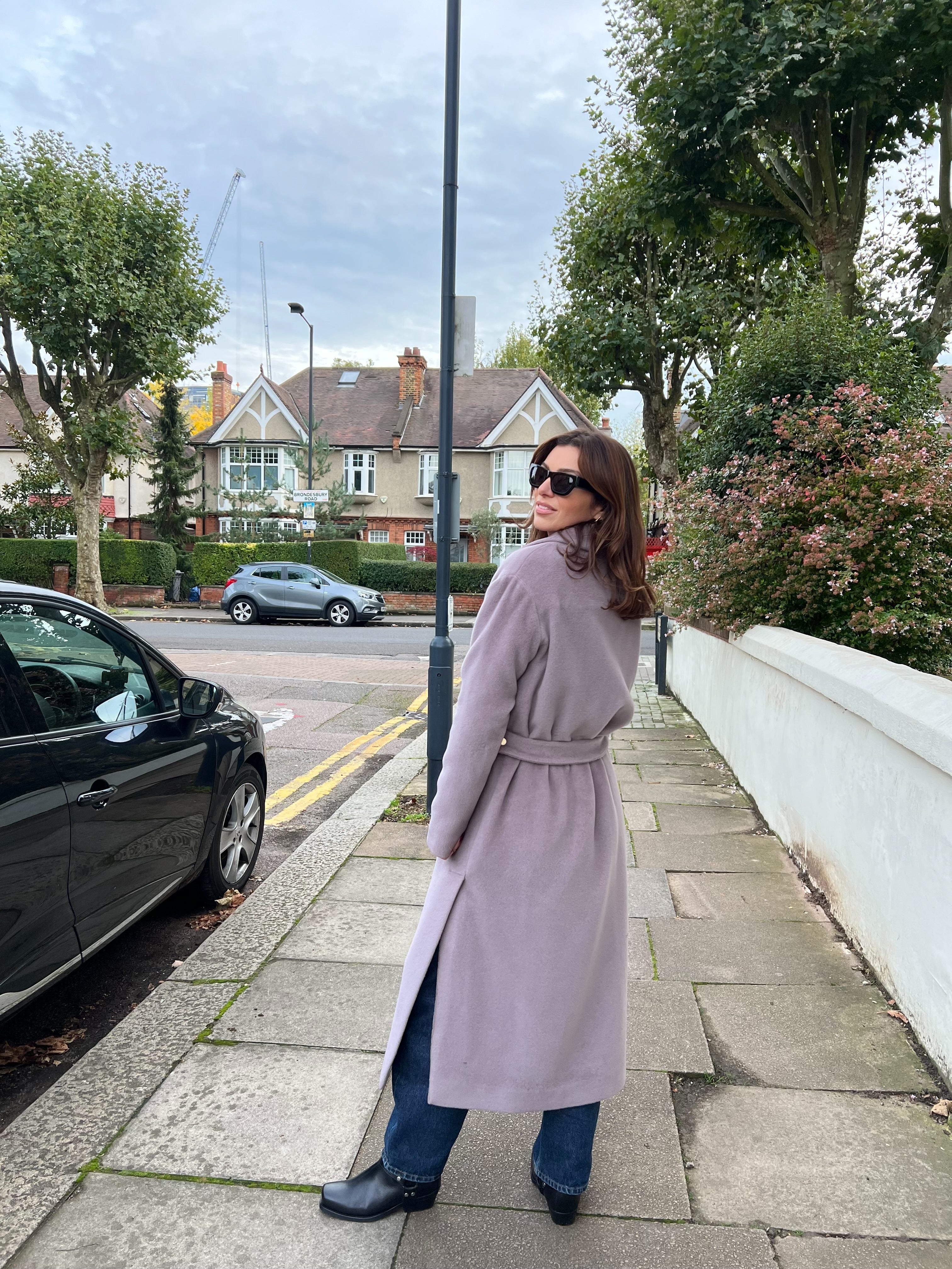 Classic coat in soft touch Virgin Wool. It comes with a big collar, dropped shoulders and single hidden double breasted closure. Side pockets.