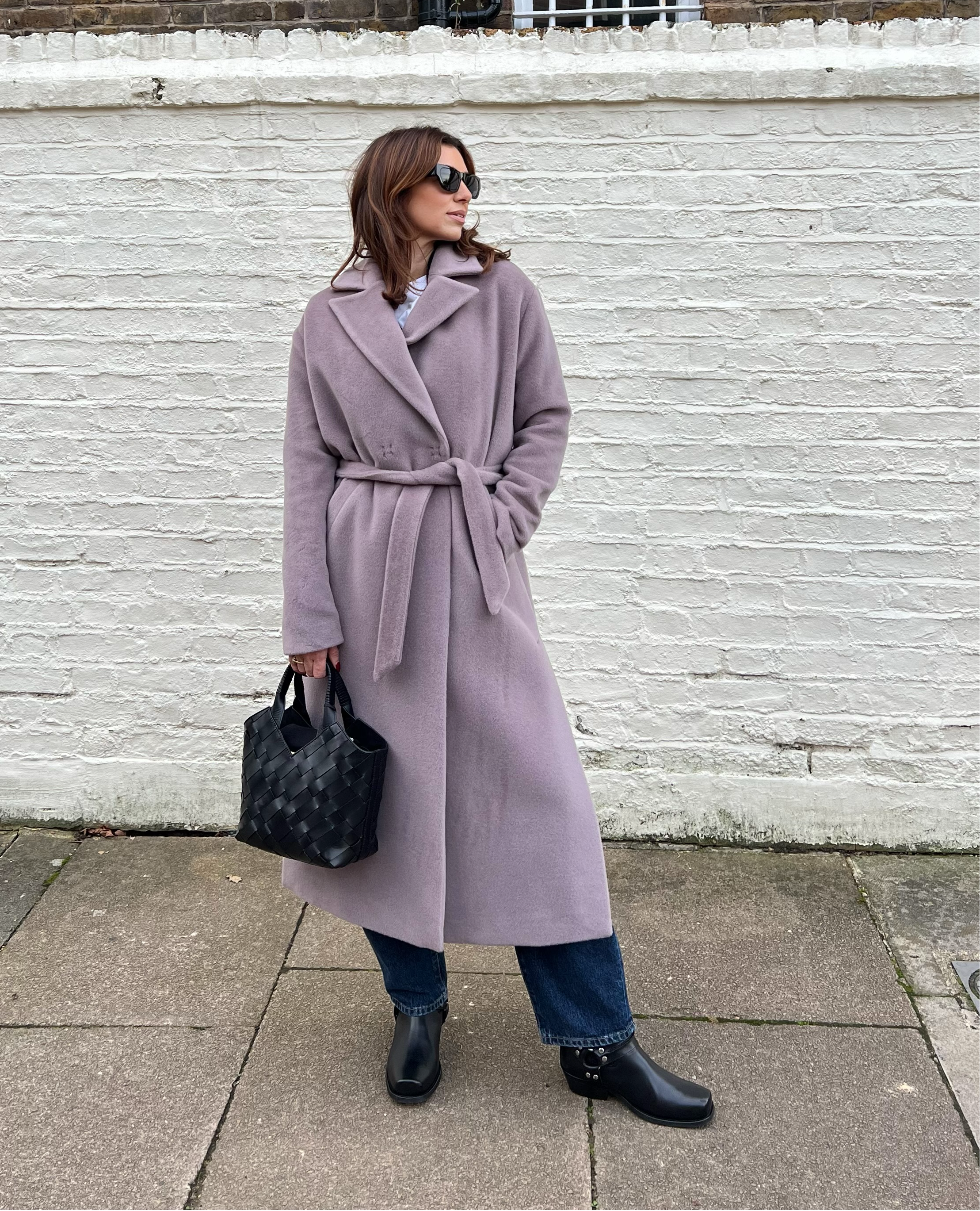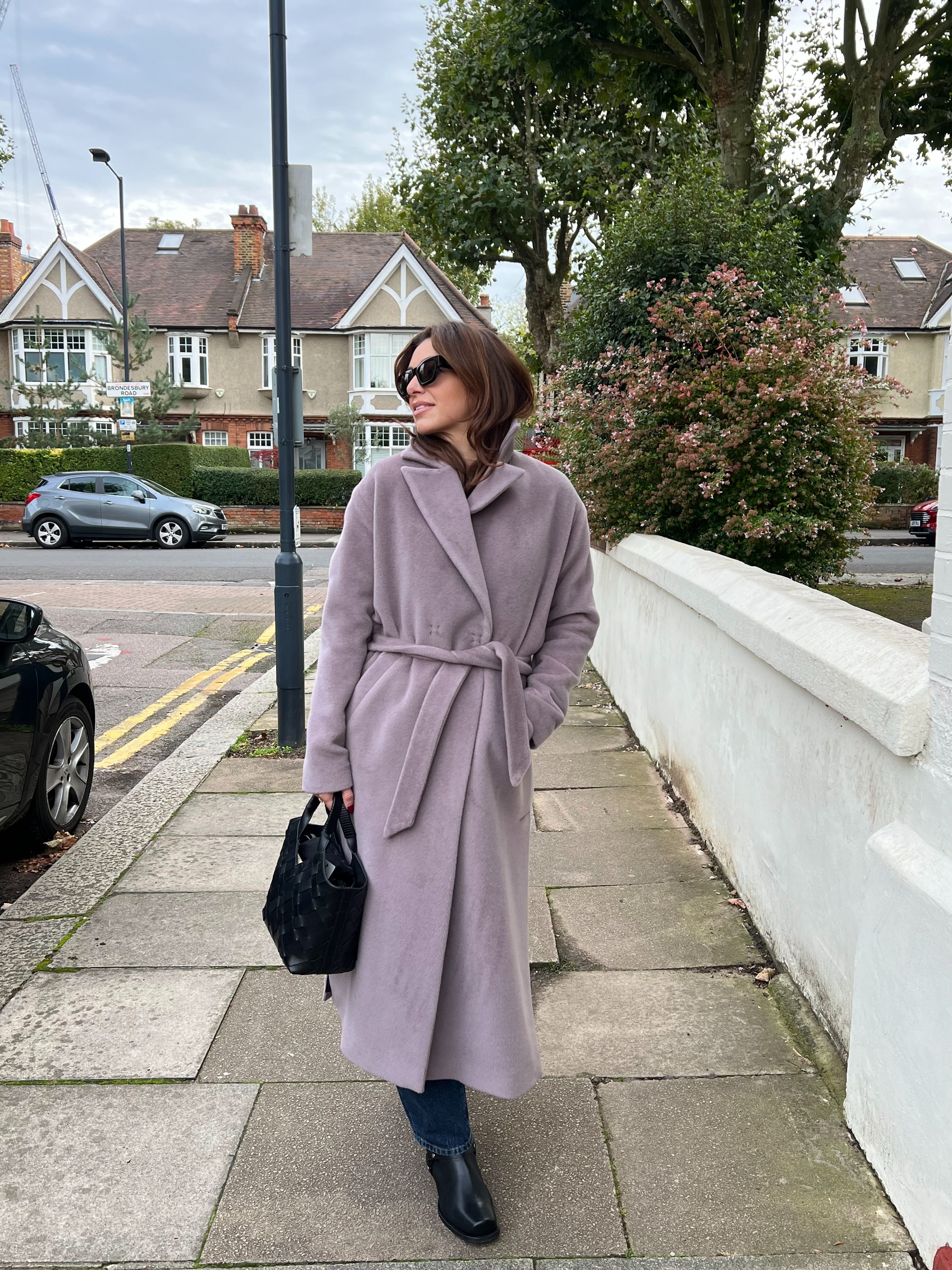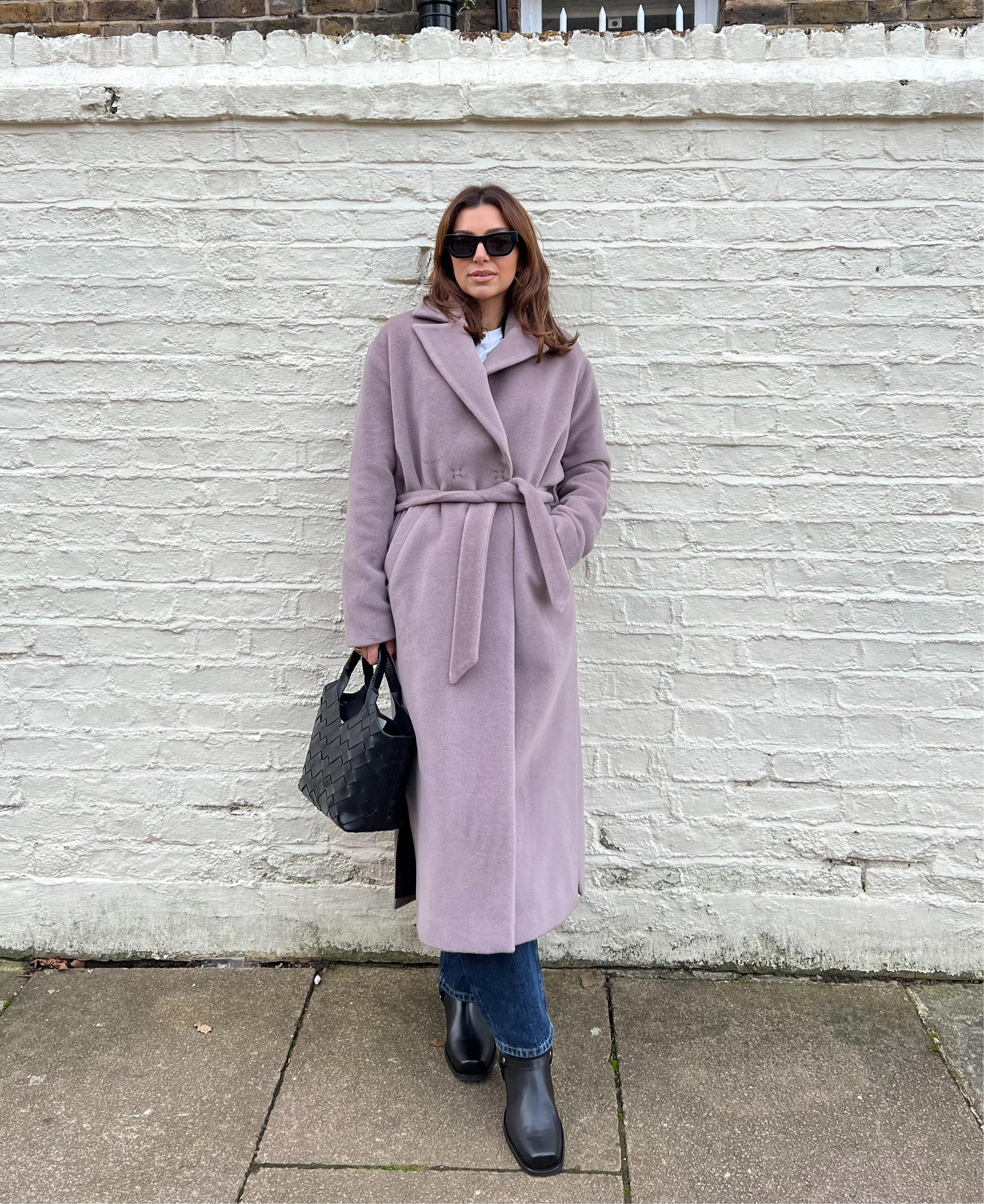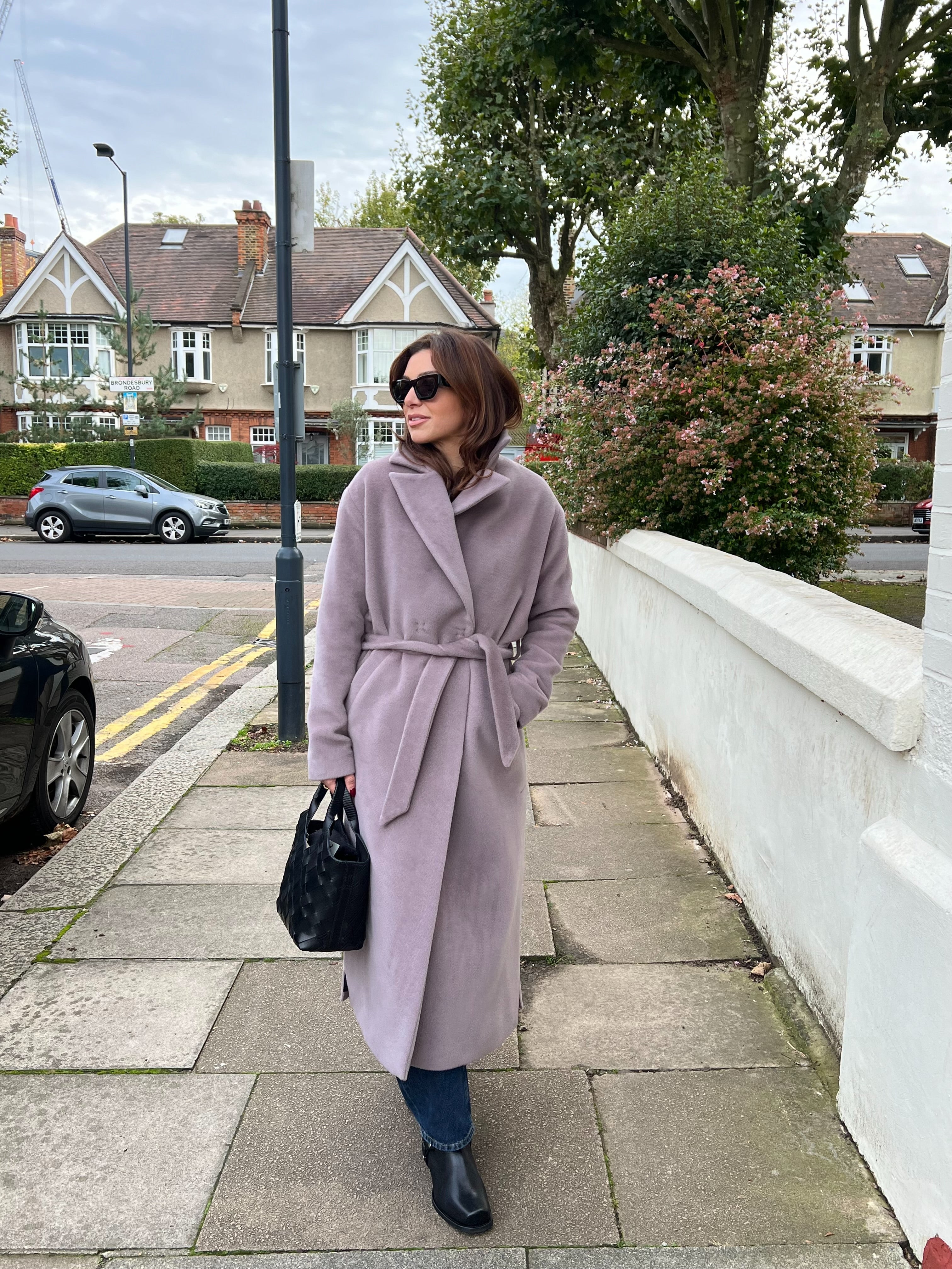 Classic coat in soft touch Virgin Wool. It comes with a big collar, dropped shoulders and single hidden double breasted closure. Side pockets.