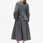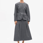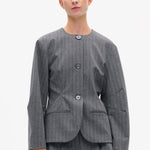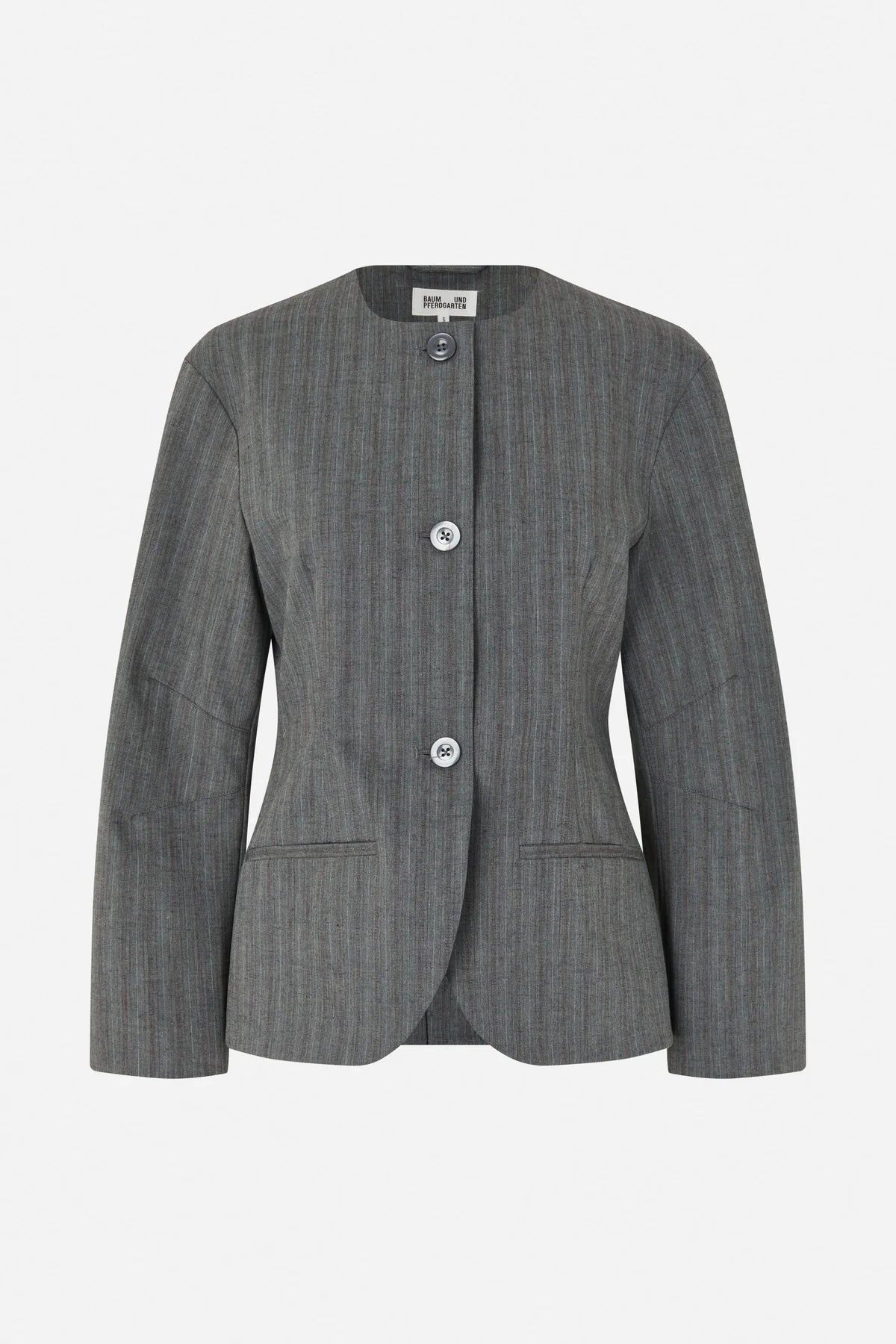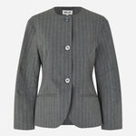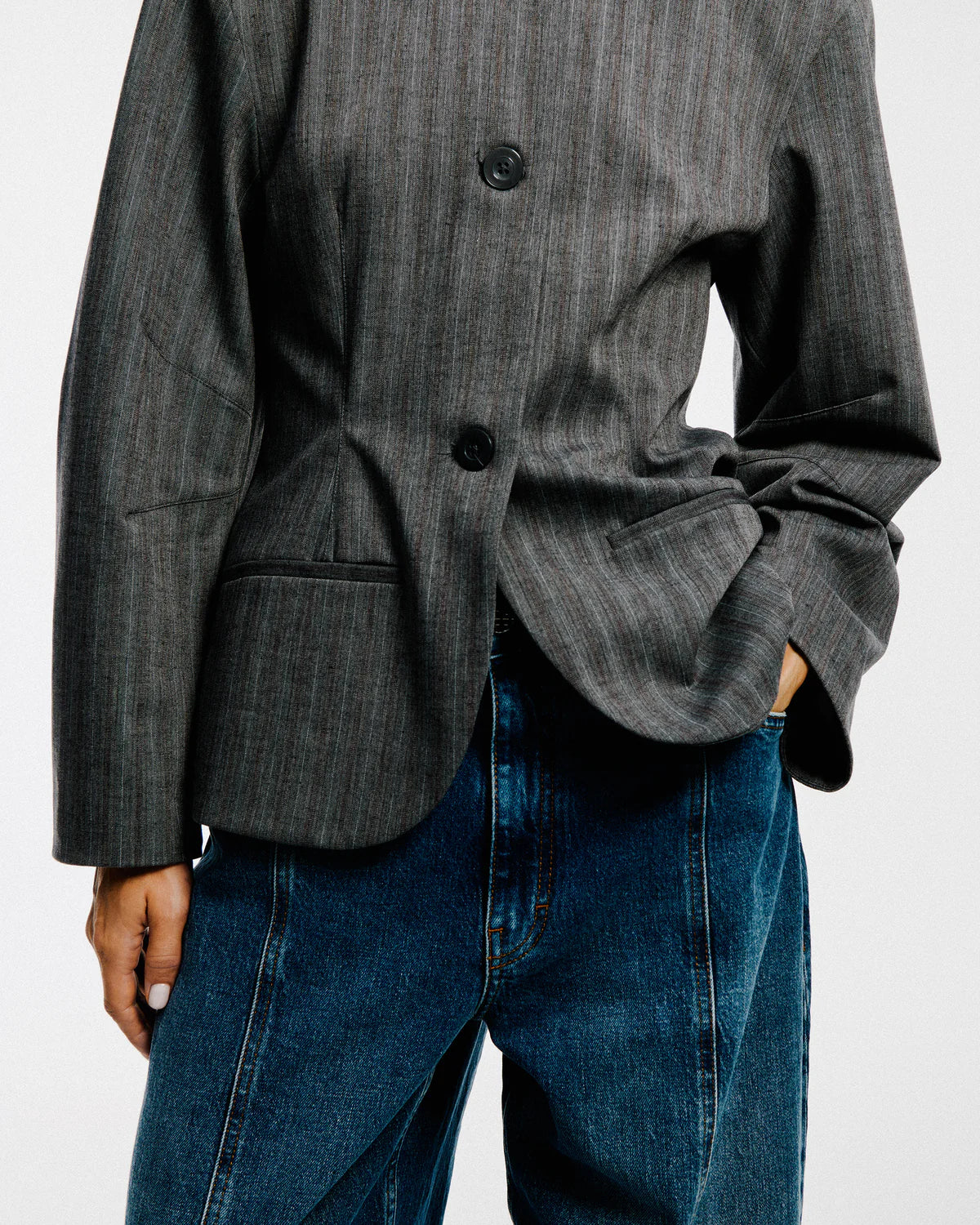 The Botilda Blazer is made in a recycled polyester and wool blend, the fabric is softly woven in a herringbone pattern that gives the style both comfort and stretch. The blazer is lined and has a fitted silhouette, curved hem and wide, dropped shoulders.