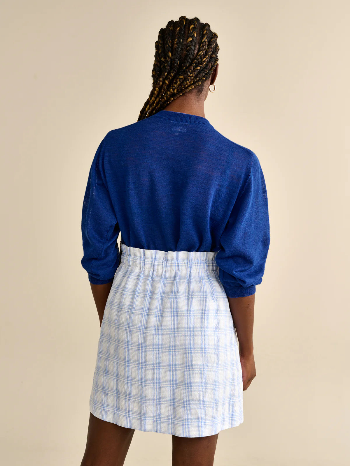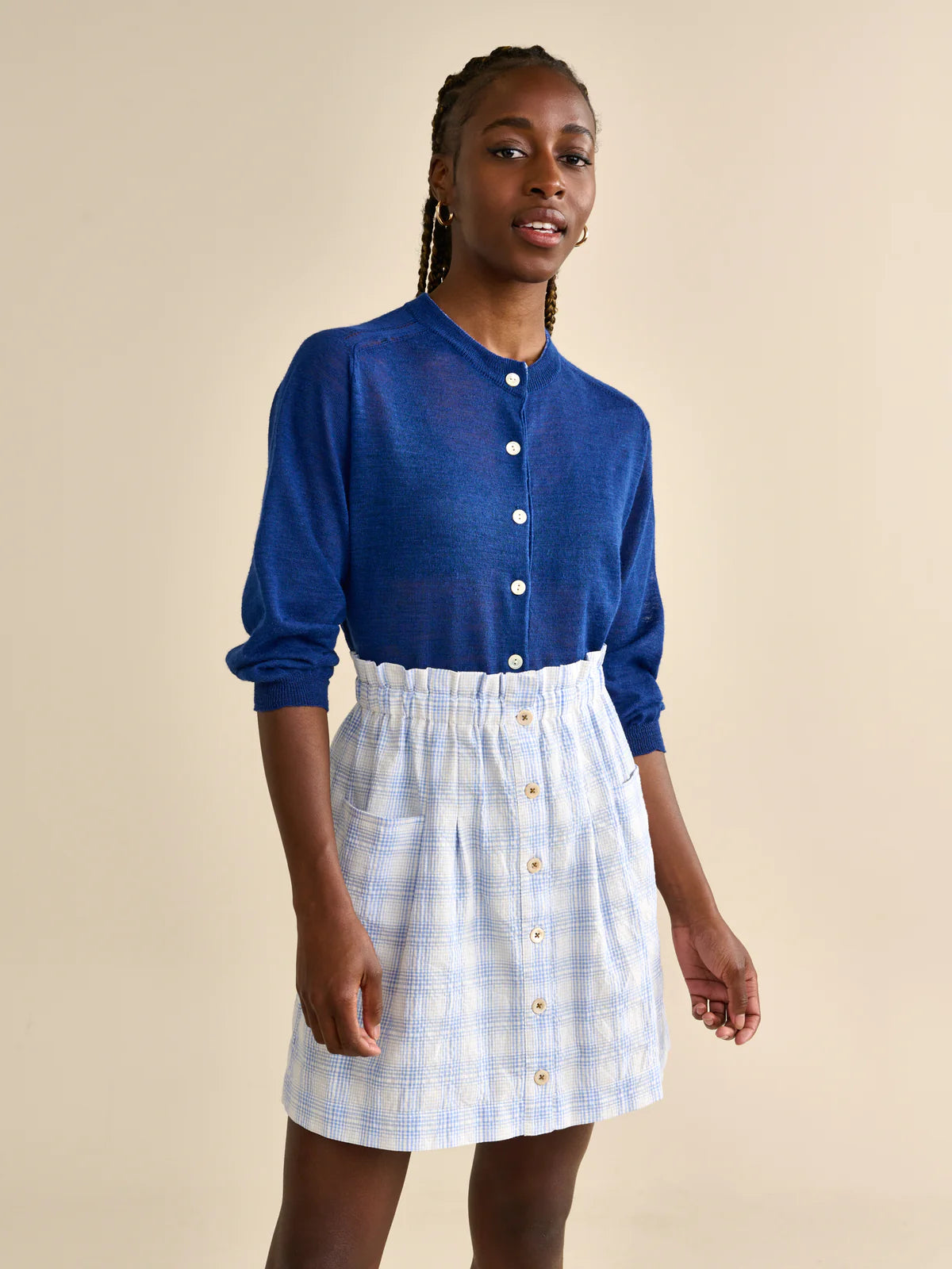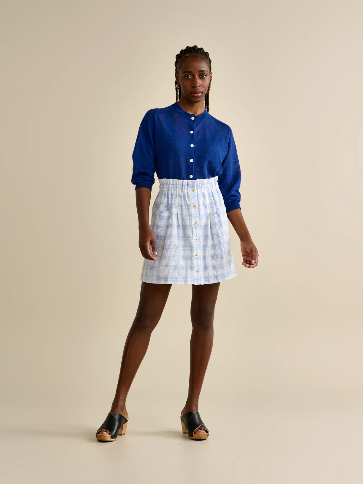 Go from the city to the beach with this fuss-free mini skirt. With its paper bag elastic waist, button front and discreet pockets, April turns summer dressing into a breeze. Made from shadow check cotton blend, it'll blend seamlessly into your seasonal edit.