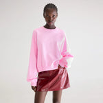 Oversized crewneck sweatshirt in washed fluo pink cotton, with a cropped fit, ribbed trims and dropped shoulders.