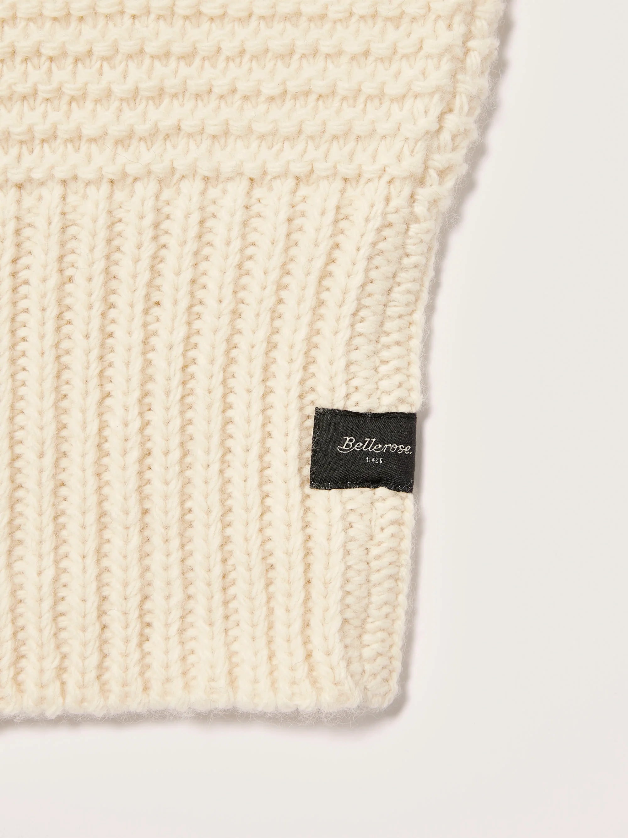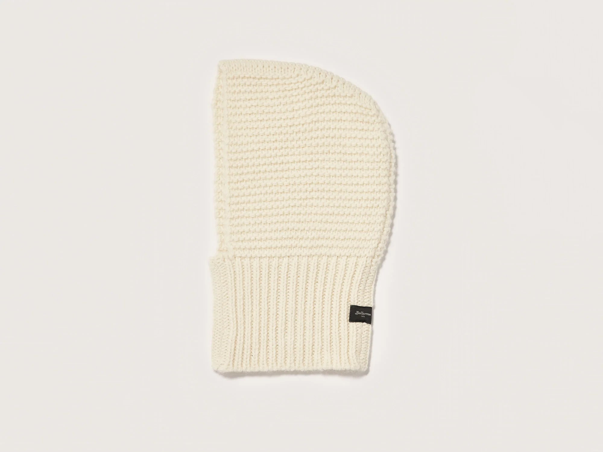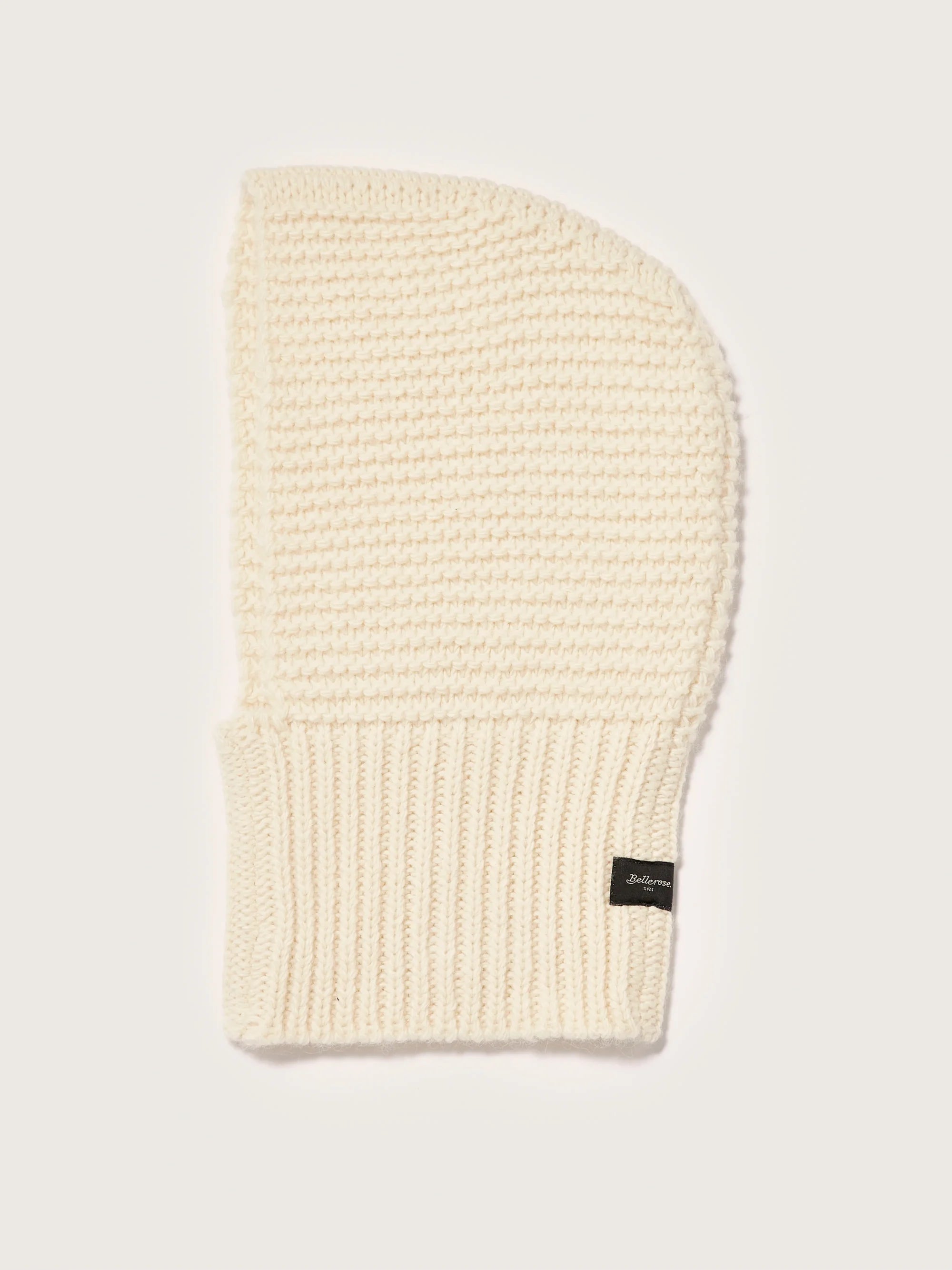 Thick yarn knitted balaclava in worker blue with Bellerose tab in the back.