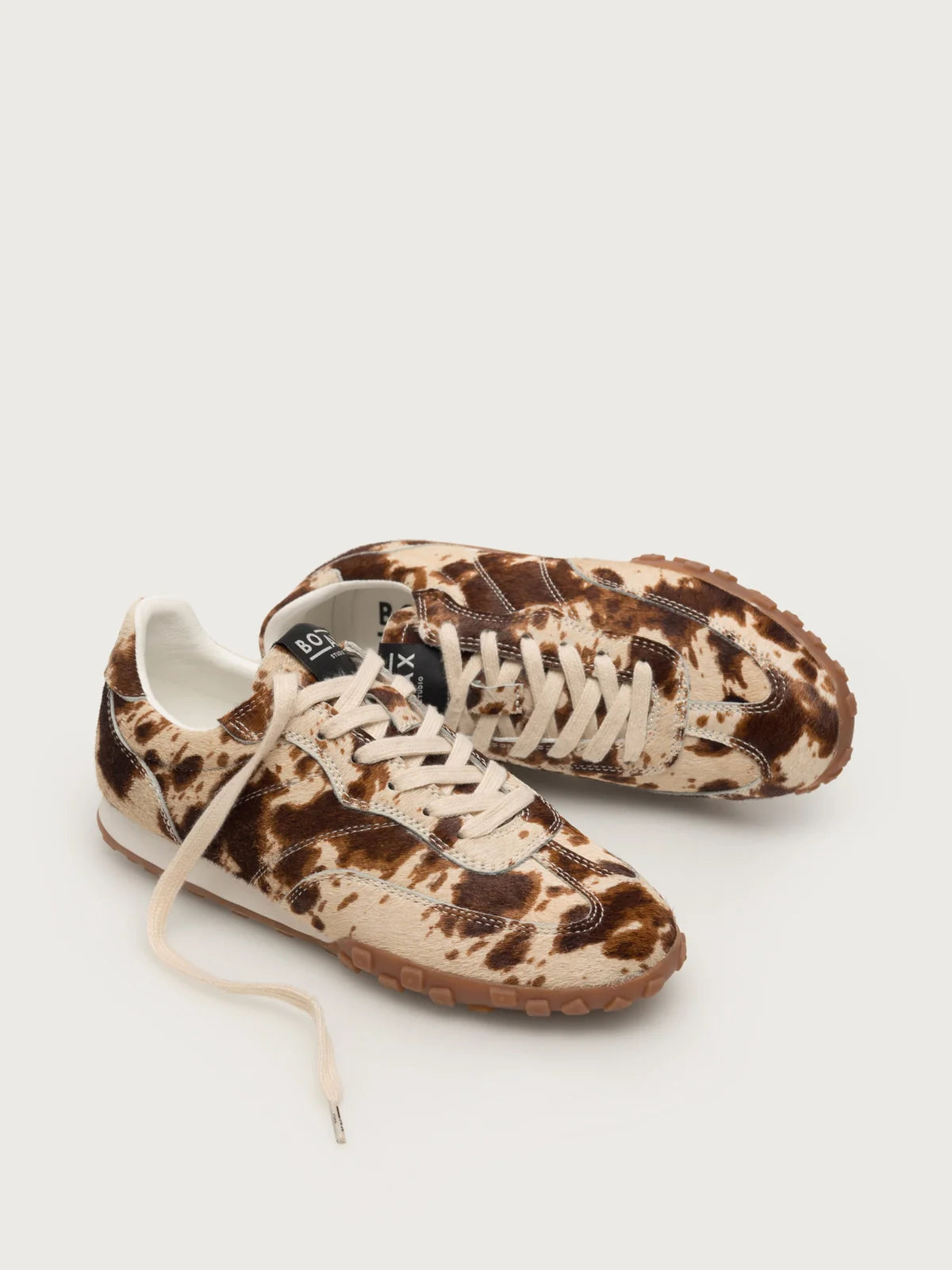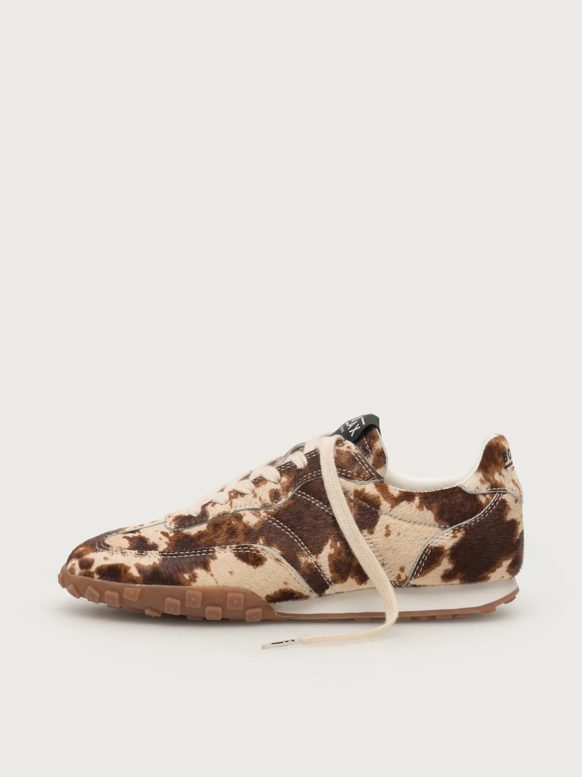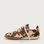 This women’s trainer comes in a hair on cream and brown cow pattern and tonal caramel sole which adds a playful, sporty touch. The lightweight, textured sole ensures extra grip and comfort, perfect for active days or casual outings.