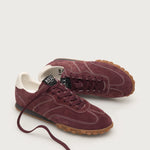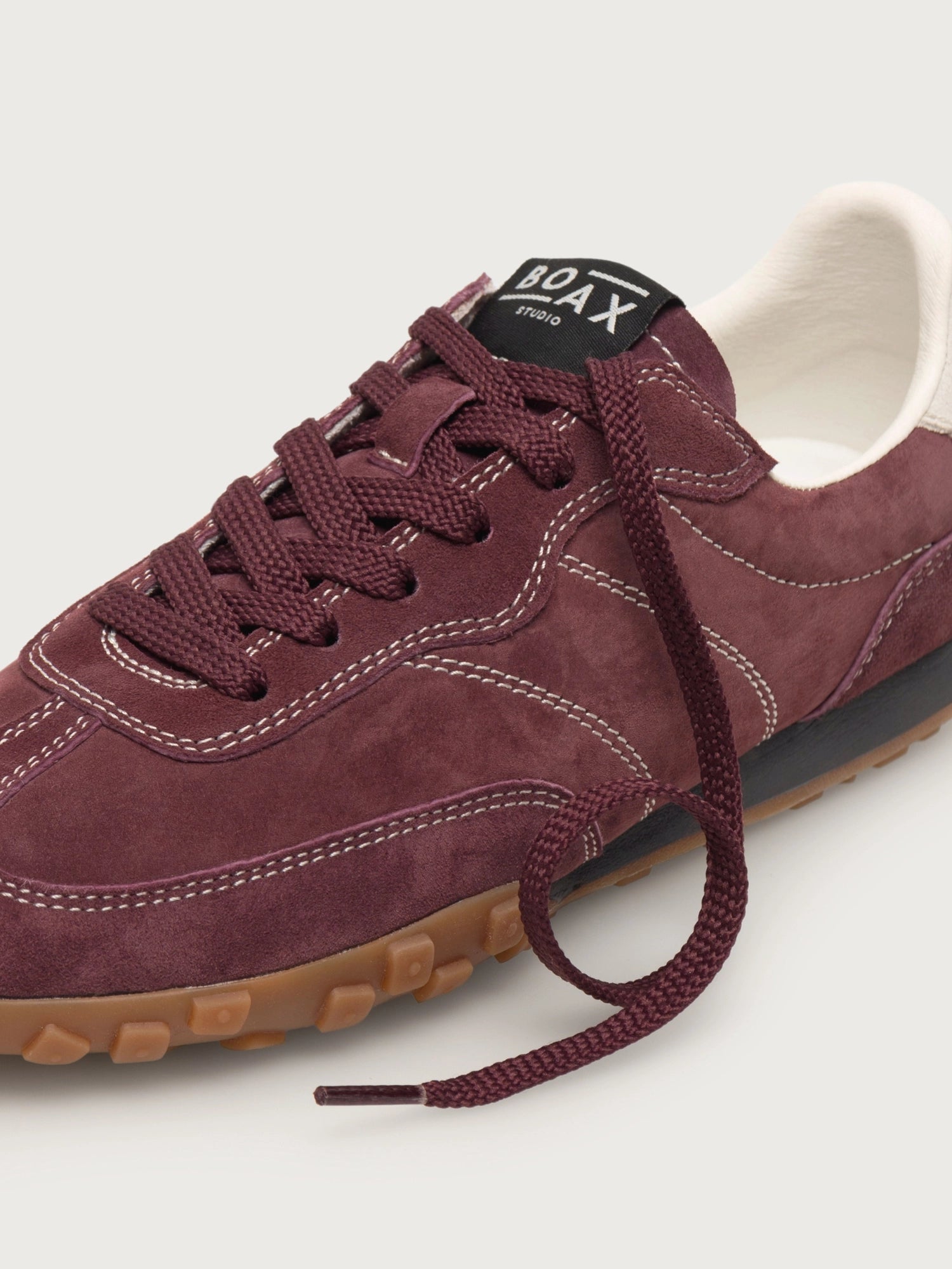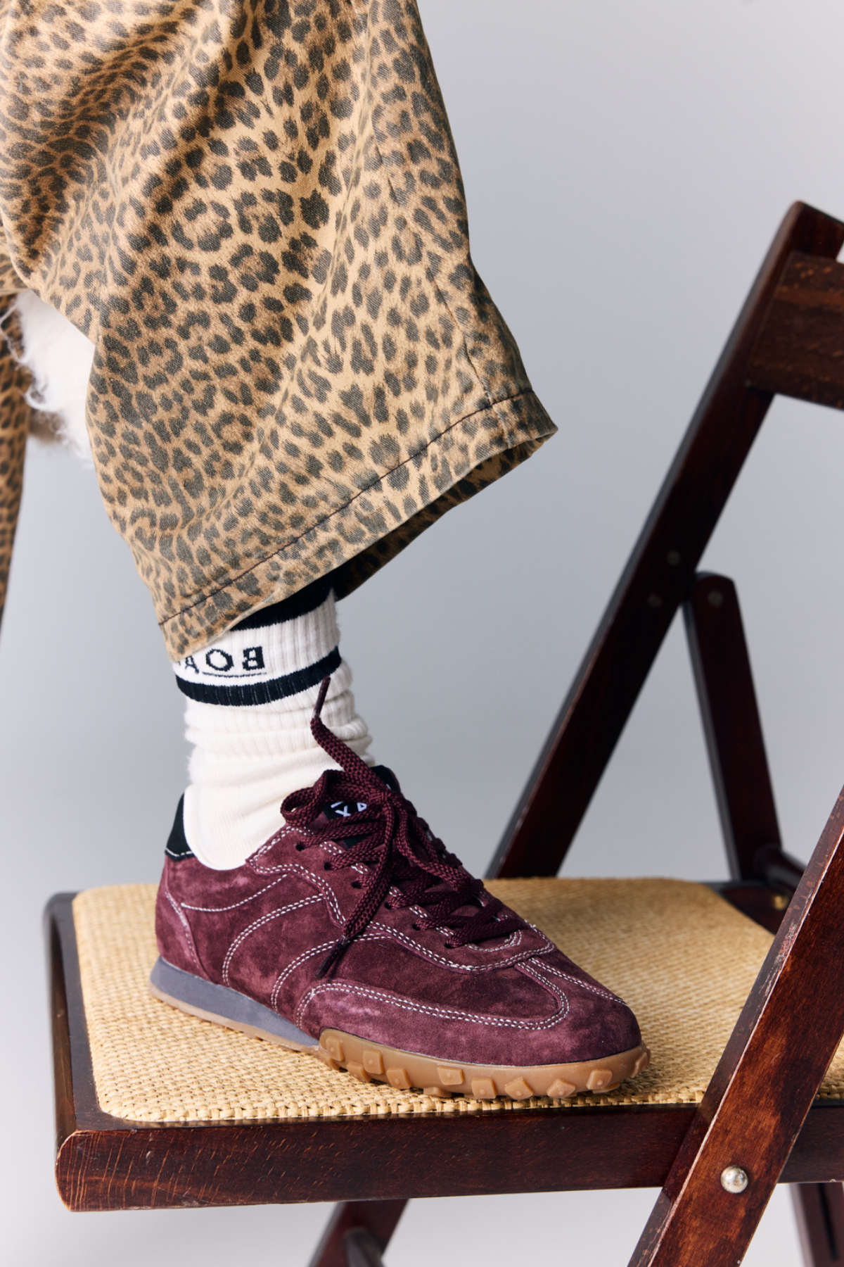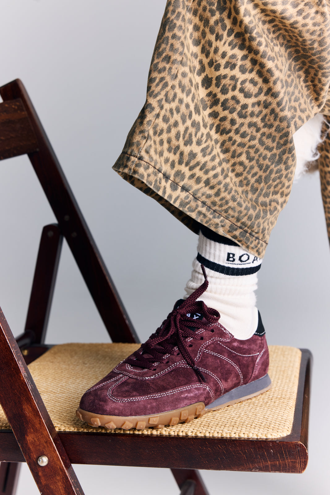 This women’s trainer comes in a rich burgundy suede and contrasting caramel sole which adds a playful, sporty touch. The lightweight, textured sole ensures extra grip and comfort, perfect for active days or casual outings.