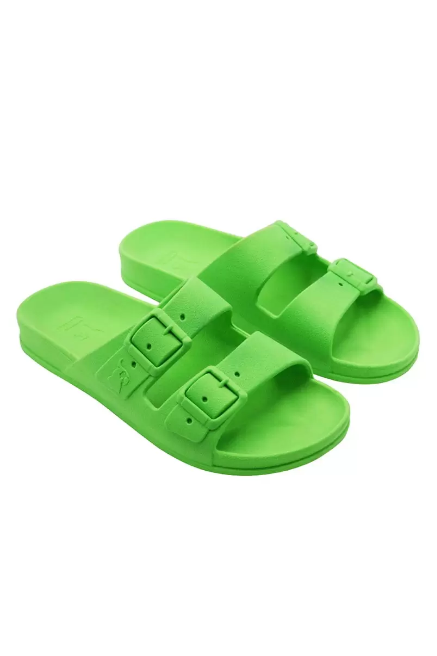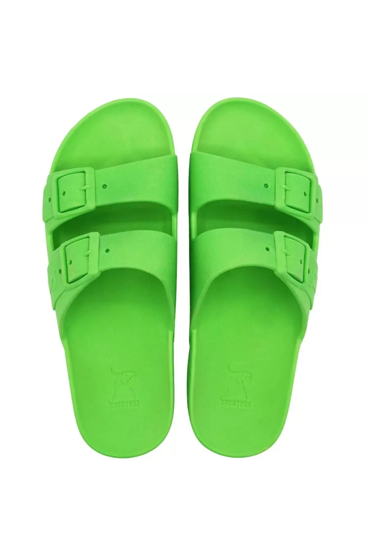 Comfortable and colourful, discover the excitement of Brazil with this flat sandal. Whether you're on the beach or at home, this sandal has a modern, timeless look. The fluorescent green BAHIA sandal is a must-have for your wardrobe.