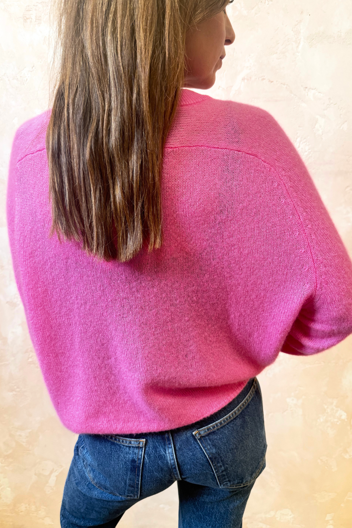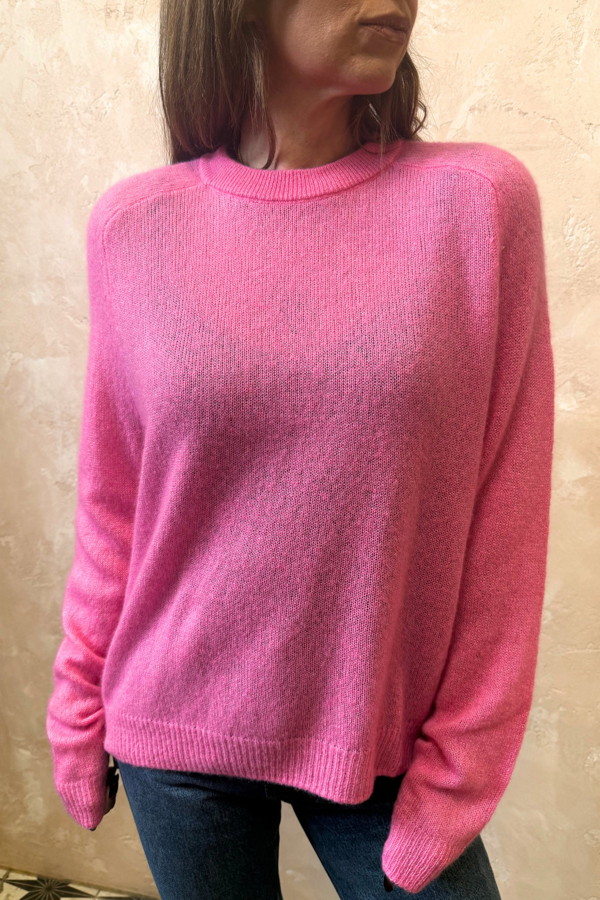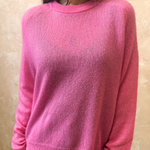 Light weight and loose fit jumper with crew neck and batwing arm. Comes in a colourful pink and pair beautifully with blue denim.
