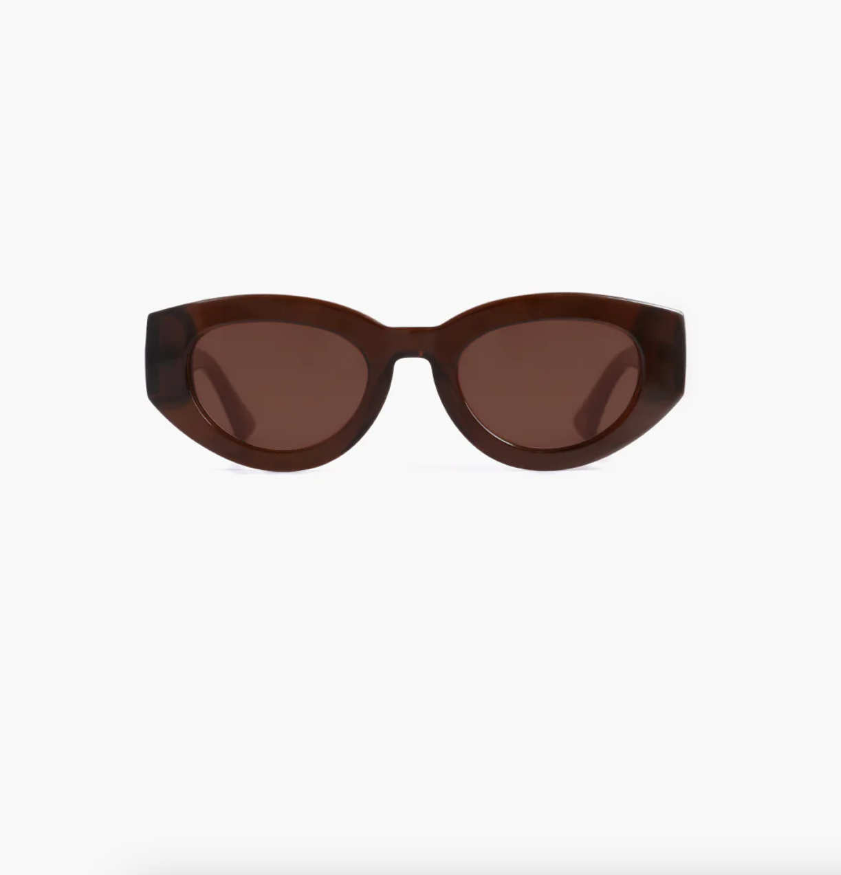 Ines Brown Brown is a modern cateye model featuring a robust frame and rounded silhouette in a warm brown colorway. Crafted for a subtle yet refined look.