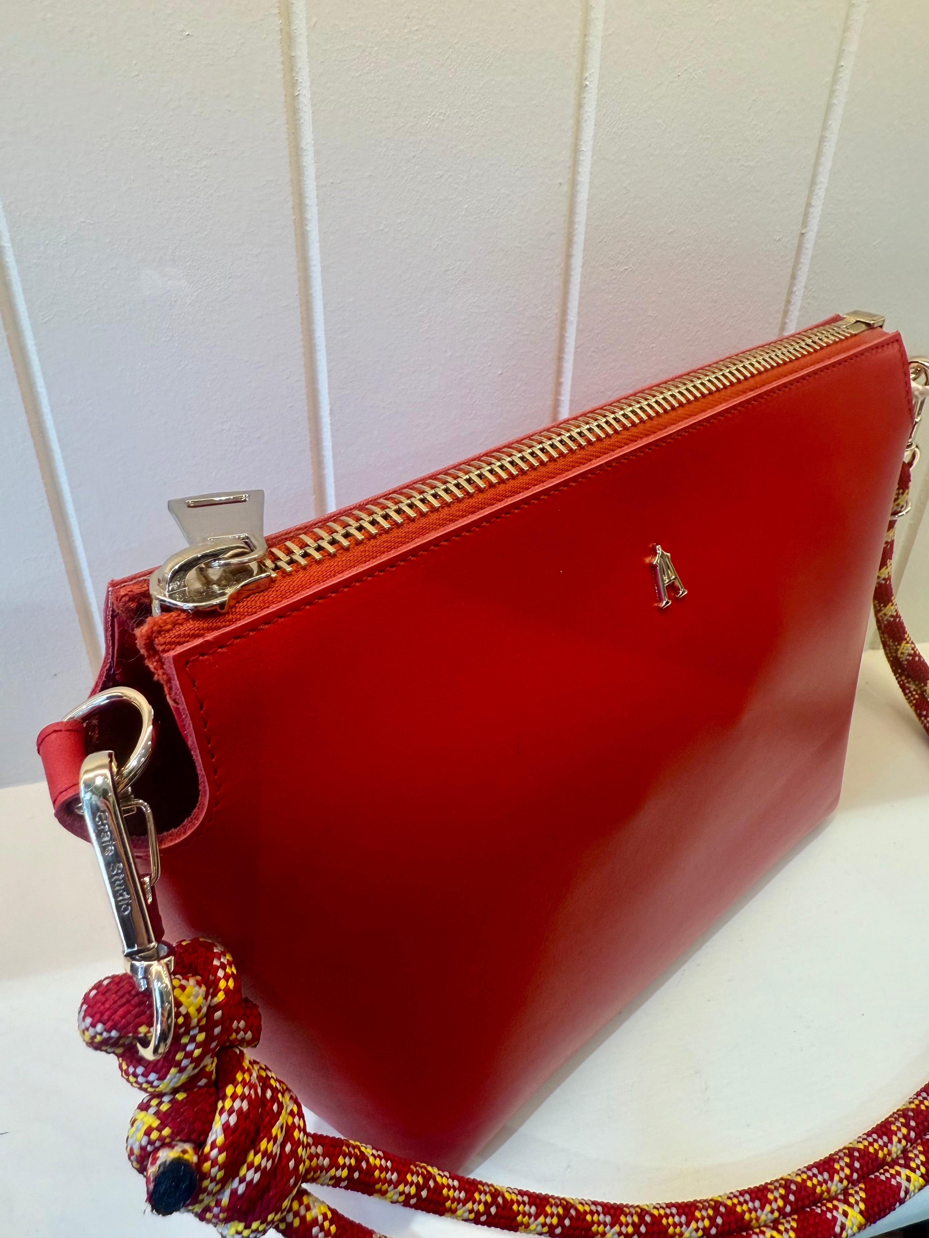 The two shoulder straps: a classic adjustable leather band for a chic look, and a climbing rope for a more casual style.