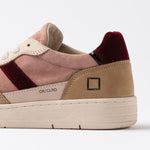 Low-top Sneakers in rose pink chamois with beige and burgundy inserts.
