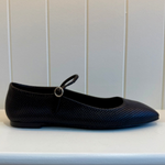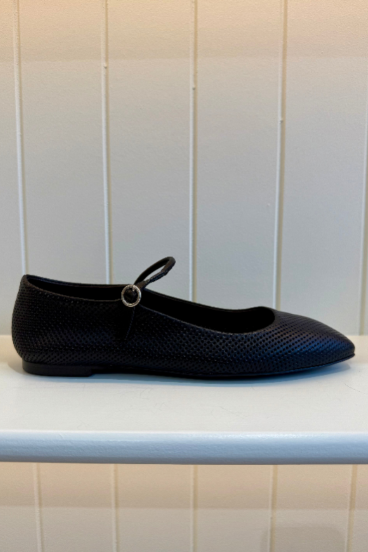 Ballerina styled flats in soft, perforated leather with slim strap with buckle over the foot.