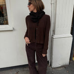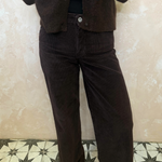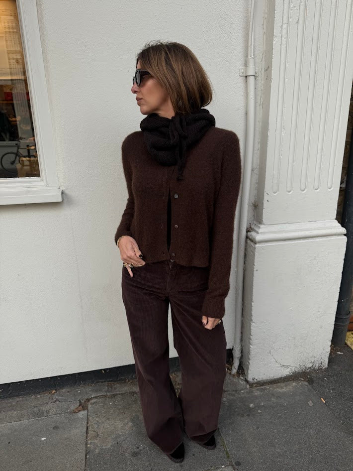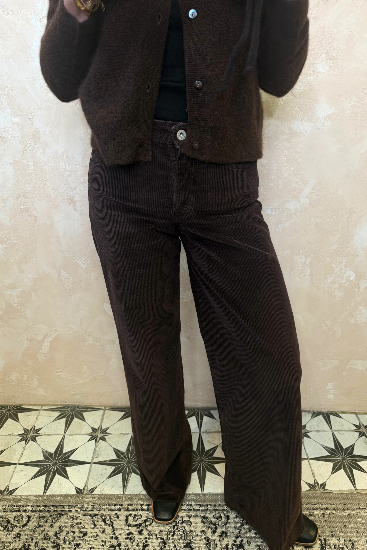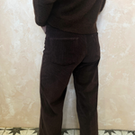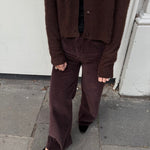 Wide leg trousers in navy corduroy. Zip and button closure with classic 5 pocket design.