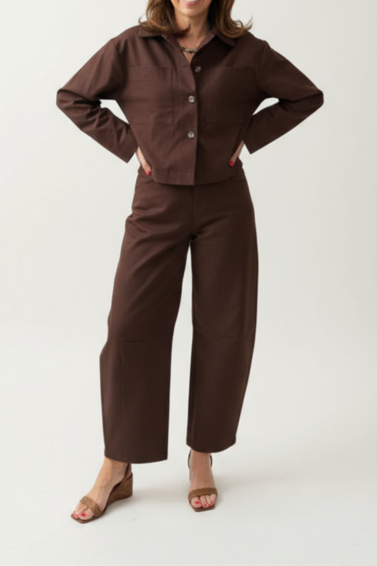 Add a touch of effortless cool to your wardrobe with the Libby Loves Erika Trousers - a trending silhouette with just the right amount of drama. Designed with a gently voluminous leg that tapers at the ankle, these trousers offer both structure and movement, creating a flattering and fashion-forward shape.