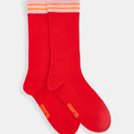 Rib-knitted socks are crafted from a soft cotton blend and feature striped on the side. Wear them pulled up over your leggings to highlight the design.