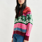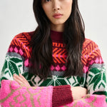 Brighten up your wardrobe with this eye-catching jacquard jumper, crafted in a melange knit for cozy warmth and rich texture. Designed with a relaxed fit and a modern boxy cut, it offers effortless comfort. The bold, multicolor pattern adds a playful twist, while ribbed trims at the collar, cuffs, and hem provide a clean, structured finish.
