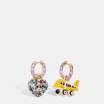 Flying straight to your heart! These small hoops are strung with an enamel plane pendant and an rhinestone-encrusted heart pendant