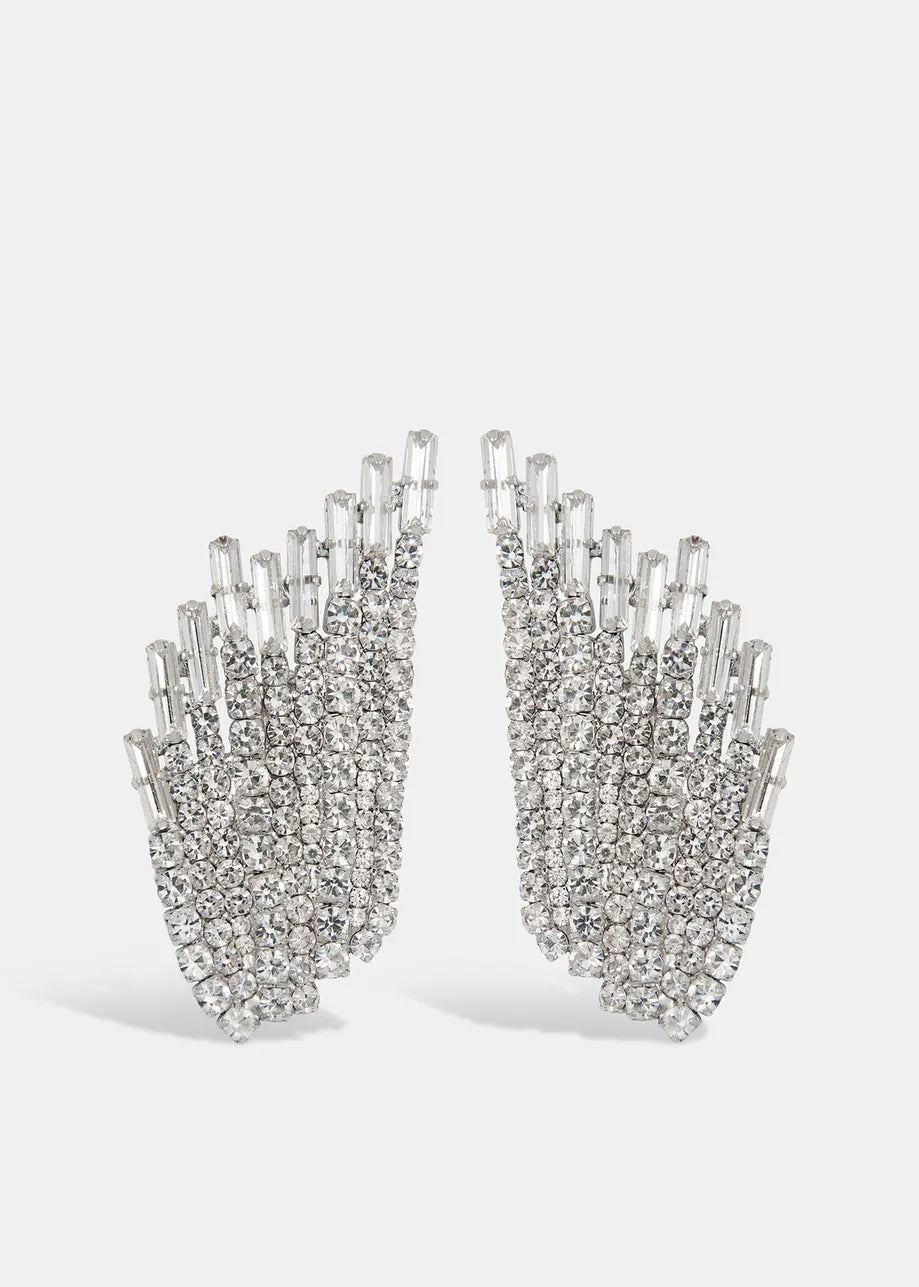 Cast from silver-tone hardware, this pair of earrings are set with shimmering silver rhinestones. The oversized design is sculpted like a cascade for a true statement finish to your outfit.