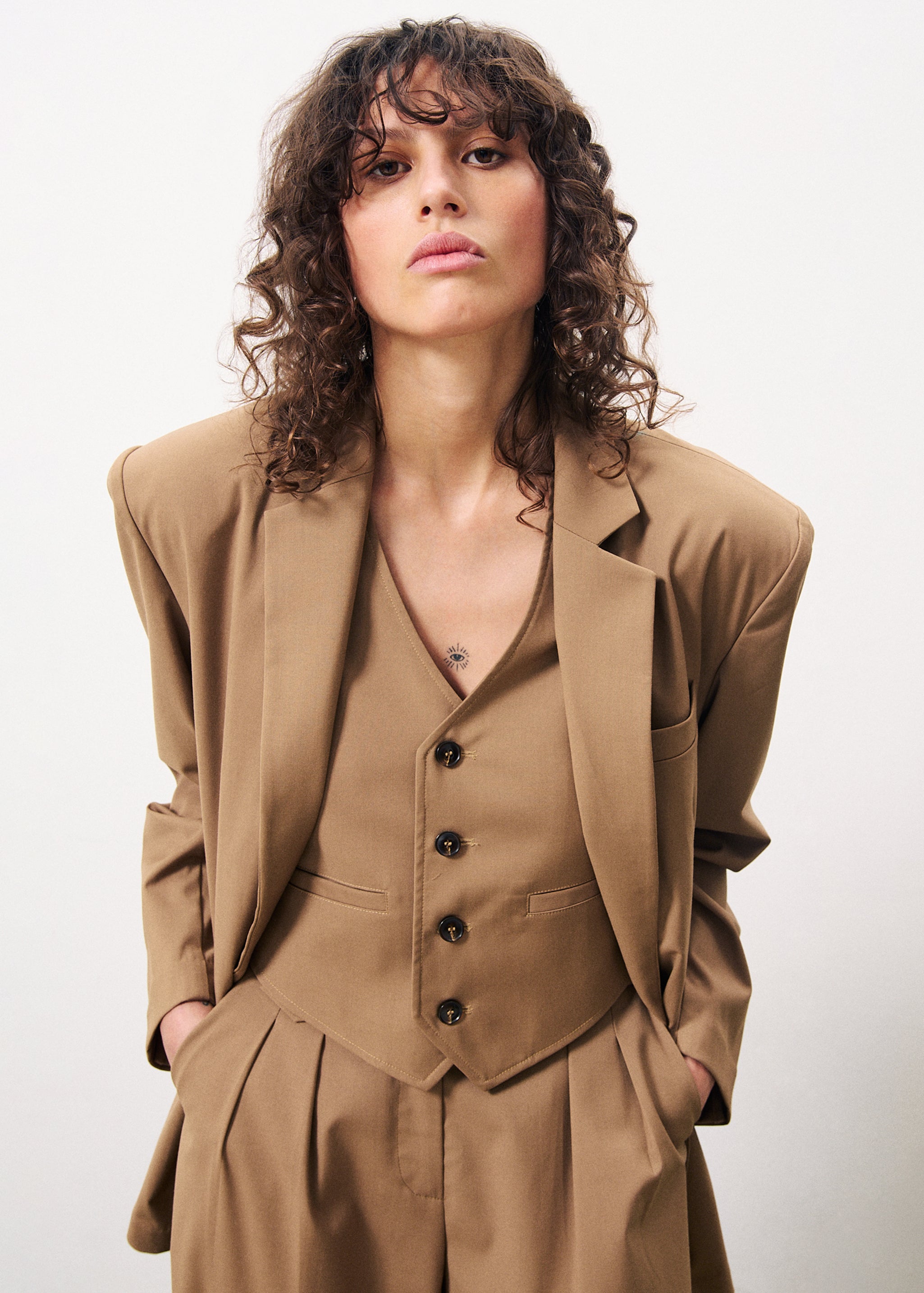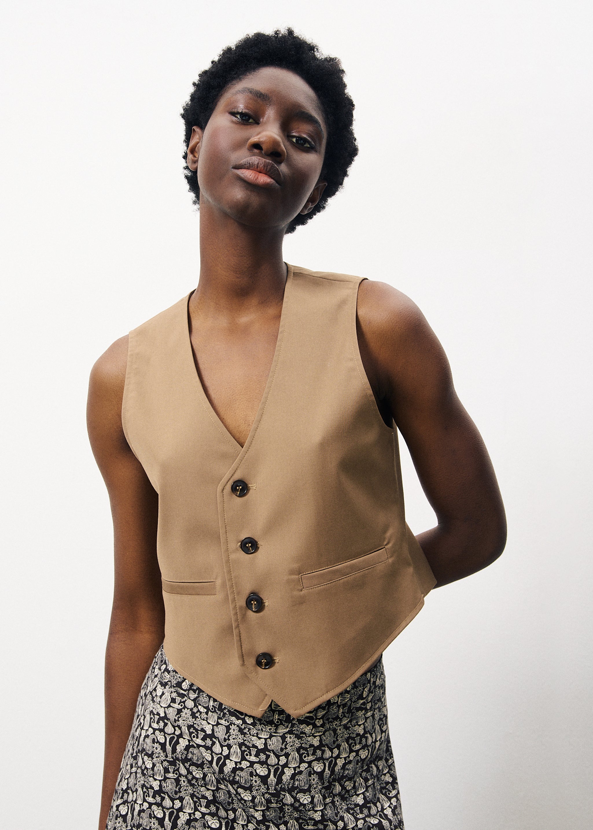 Classic waistcoat with masculine cut, the Alix is perfectly paired with the matching Samira Blazer. It's V-neck and closes with buttons at the front. Can be worn on its own or over a T-shirt.