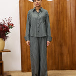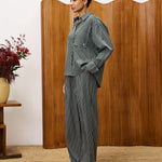 Loose classic shirt with button closure, classic collar and chest pocket.