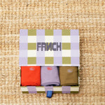 Pack of 3 pairs of socks; Lilac, Khaki, Red.