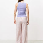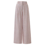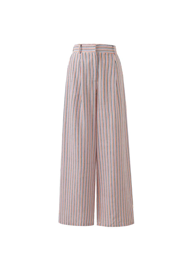 Relaxed trousers with straight, wide leg and zip and hook closure. Orange stripes on cream base.