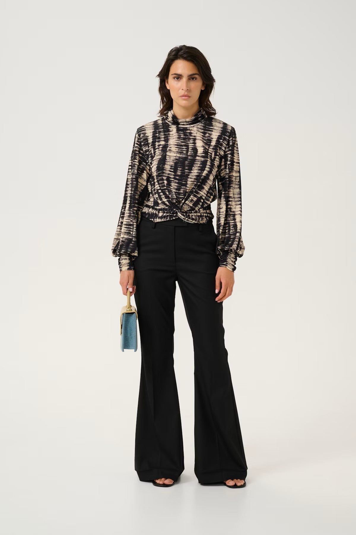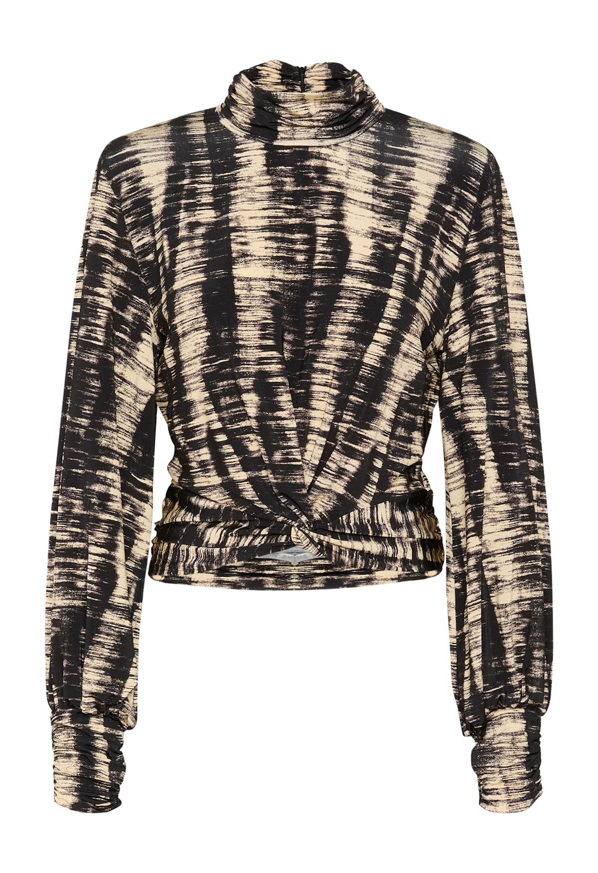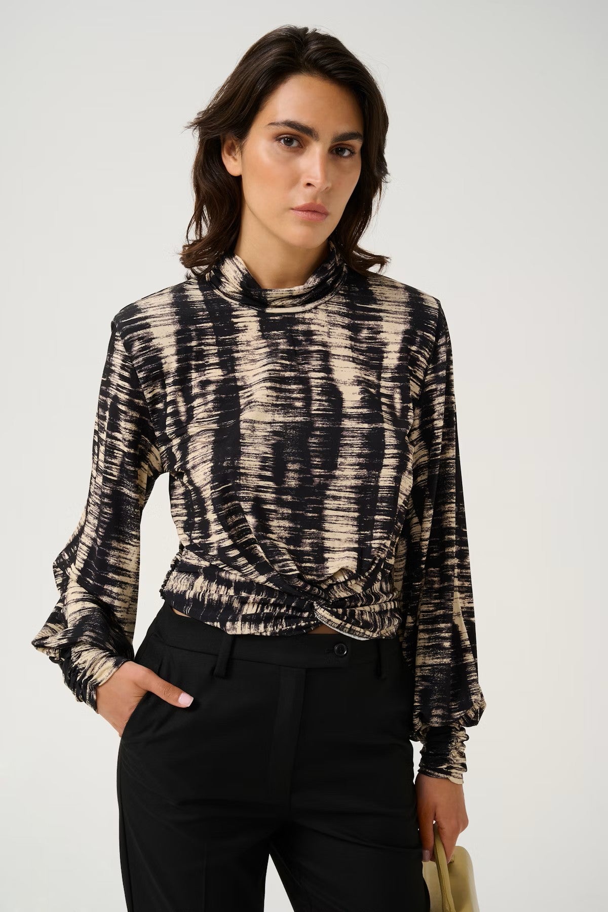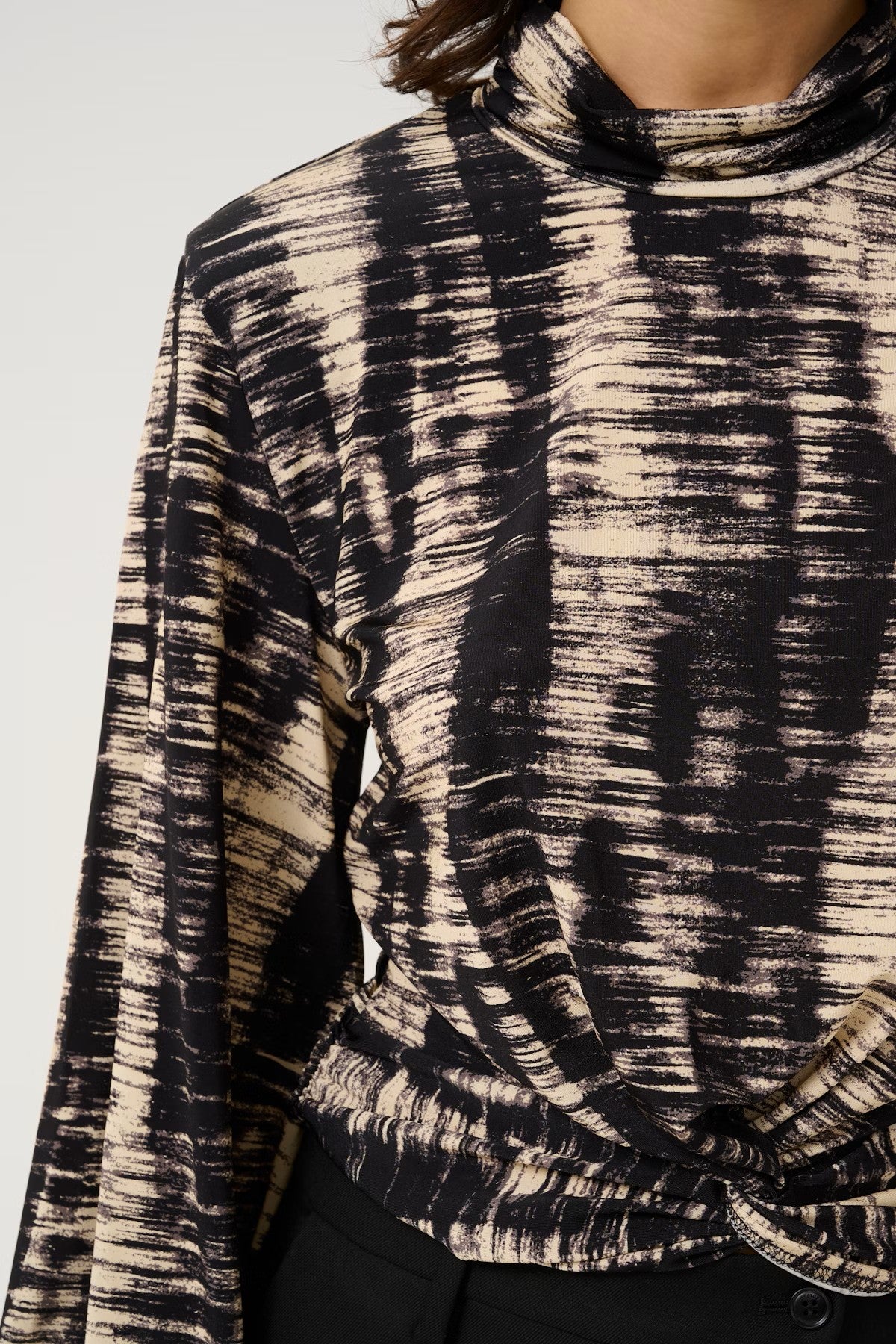 Long sleeved top with loose turtleneck and twisted knot at the front.
