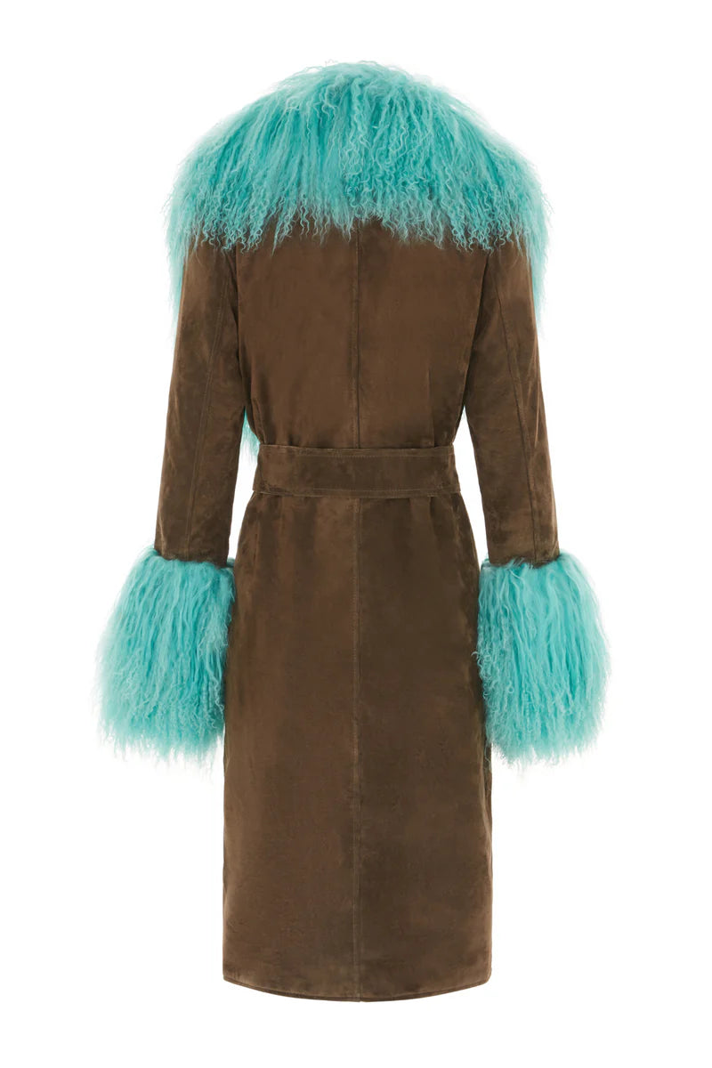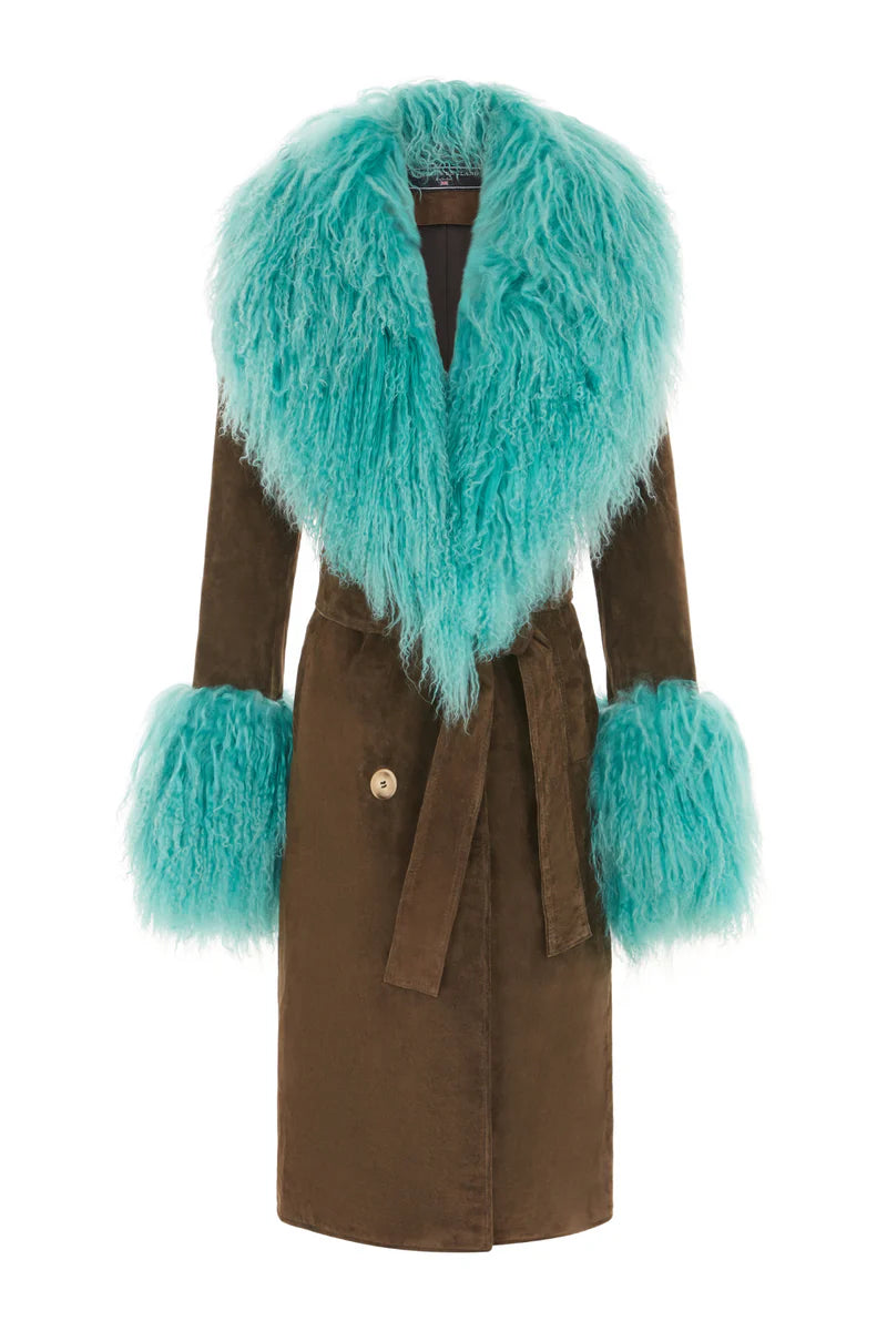 Manhattan Suede Coat - Olive/Turquoise