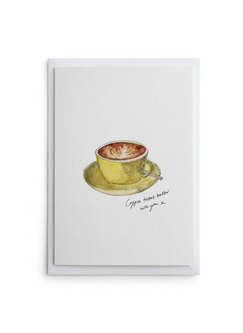 Who doesn't love to receive a thoughtful card? And why not one with their favourite drink? We invite you to send a beautifully handcrafted card, painted by India then printed on luxury paper.