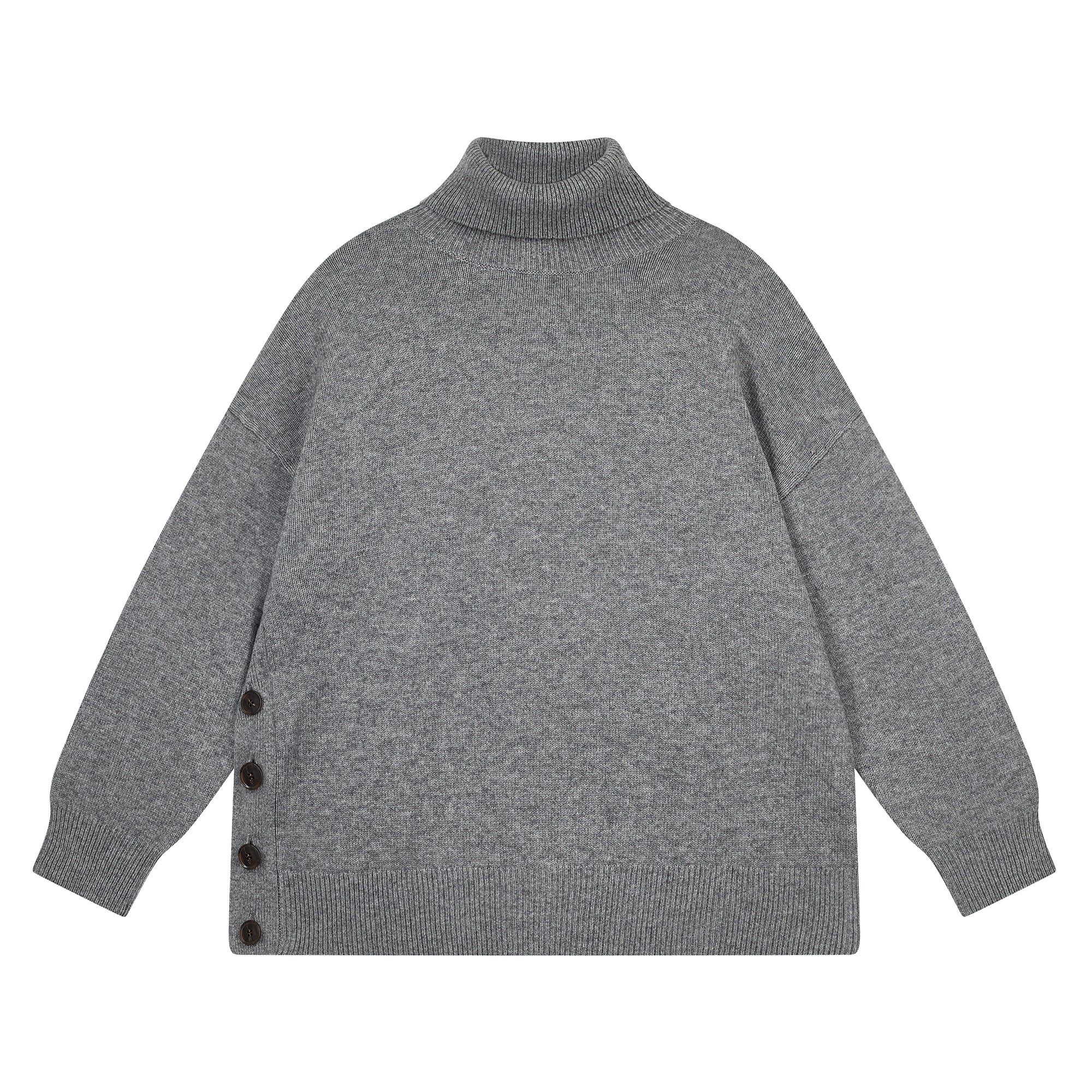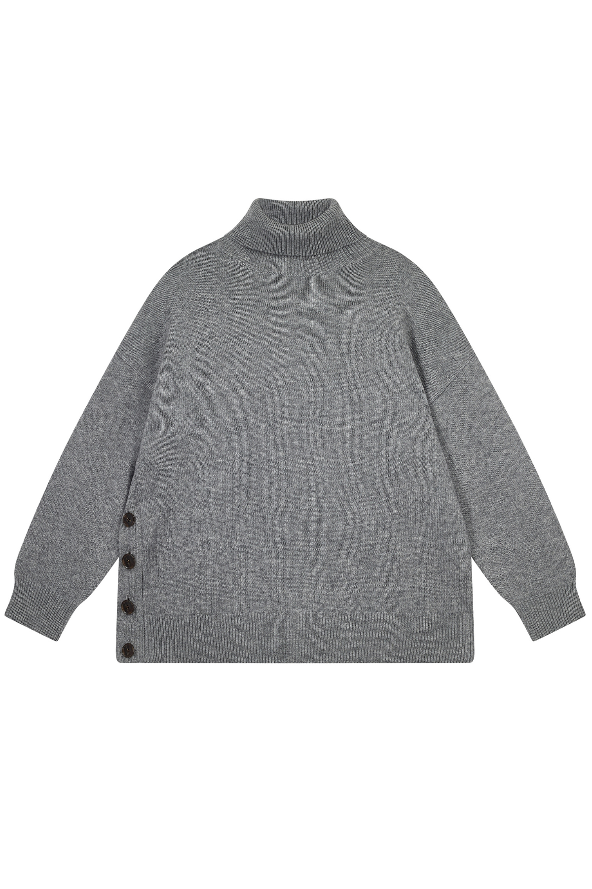 Jumper 1234 cashmere and wool jumper. Oversize roll neck in a cashmere and wool blend, heavier weight with a great button detail on one side.