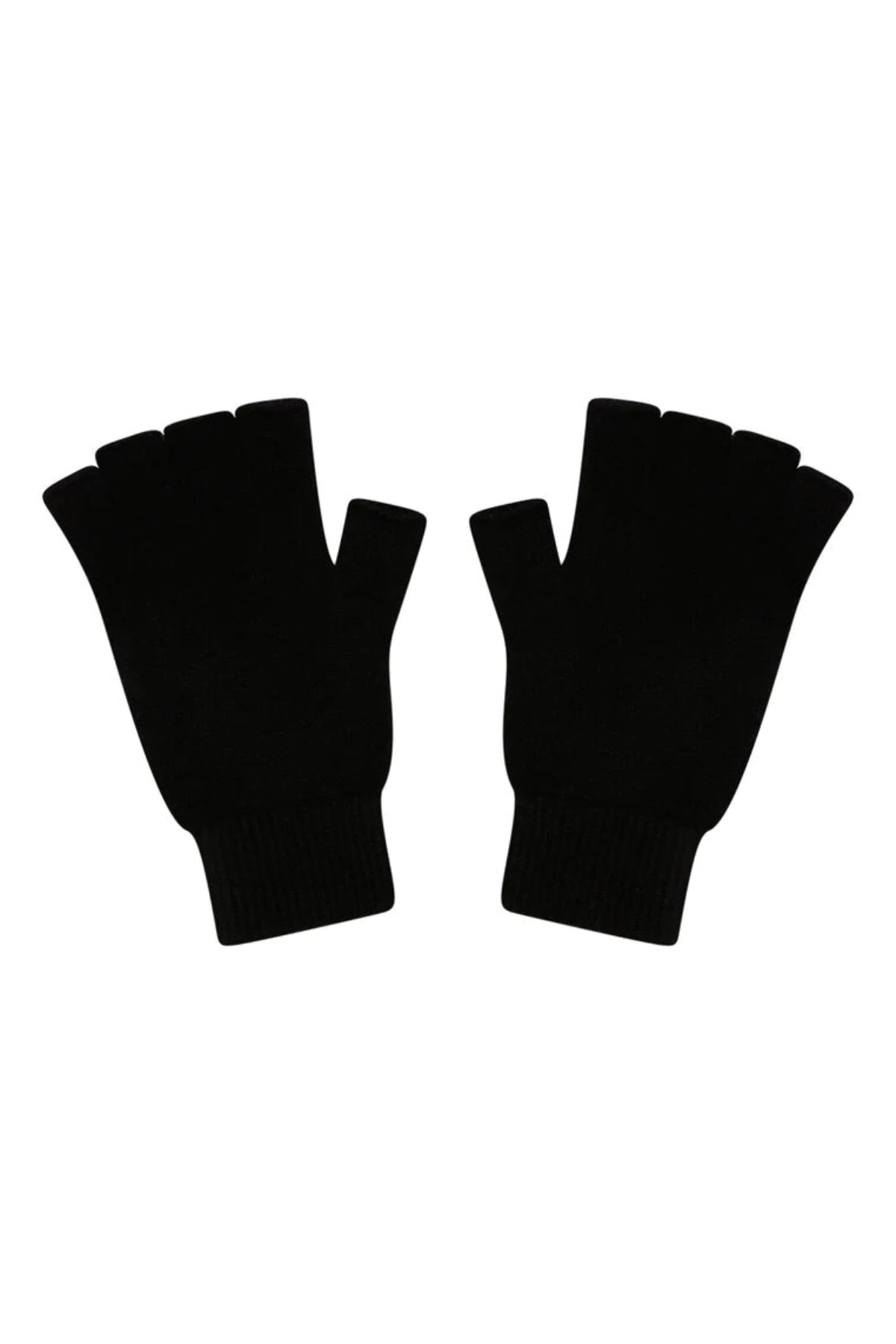 Fingerless cashmere gloves in available in many colours from Jumper 1234. These ones are traditional Black. Perfect in-between go to for staying warm and cool and when you need access to a touch screen.