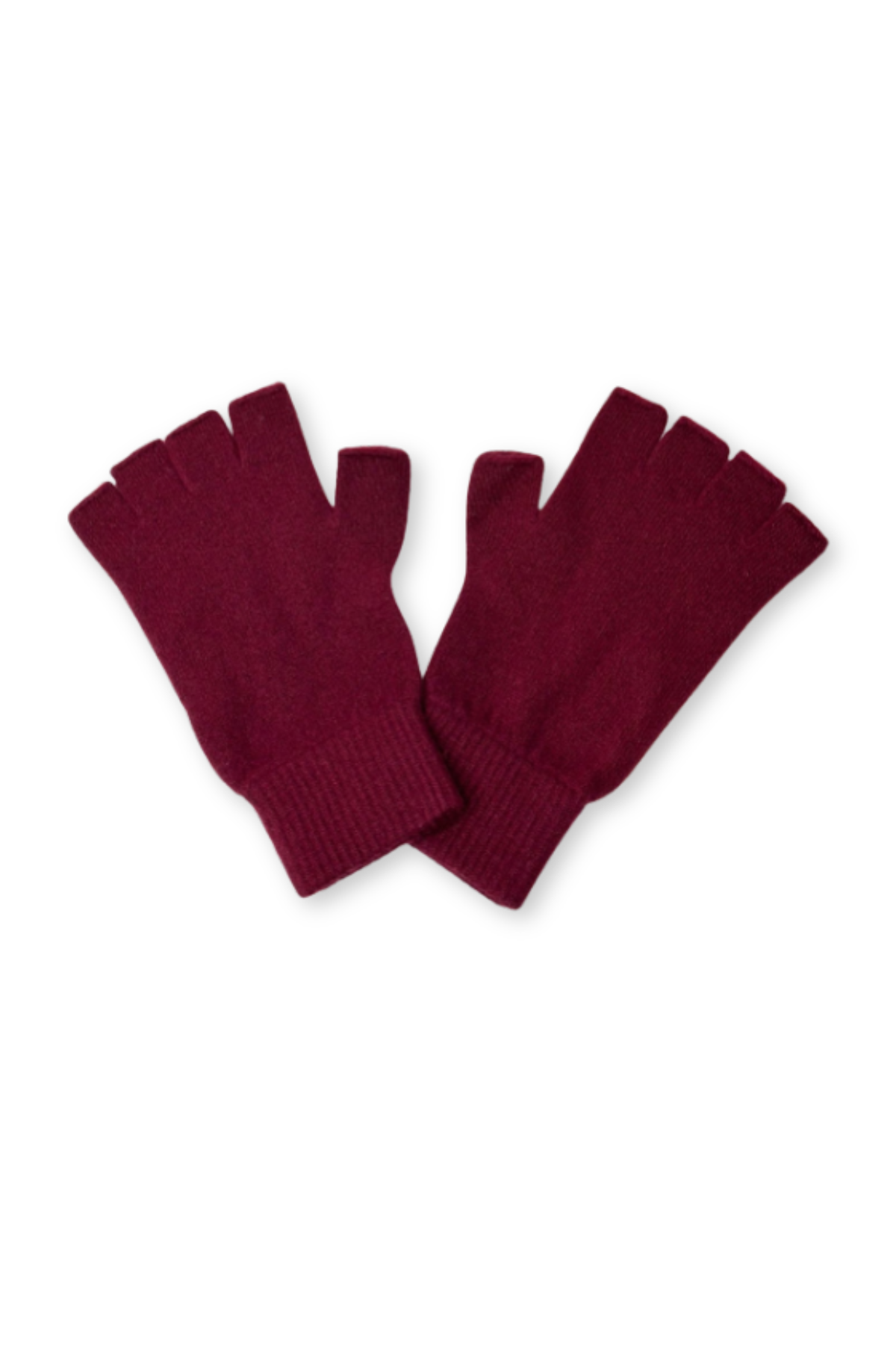 Fingerless cashmere gloves in available in many colours from Jumper 1234. These ones come in warm Burgundy. Perfect go-to for staying warm and cool and when you need access to a touch screen.