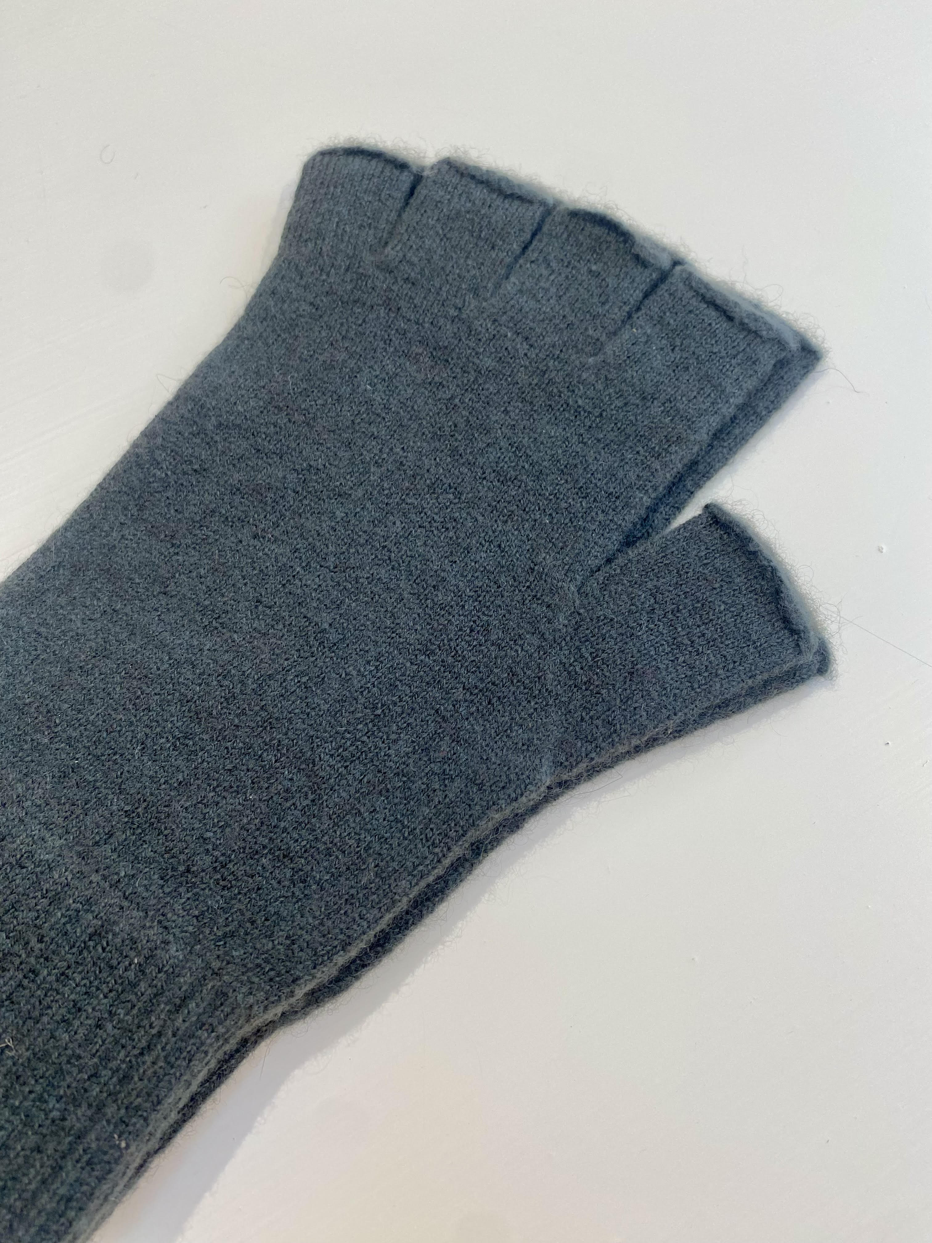 Fingerless cashmere gloves in available in many colours from Jumper 1234. These ones come in Khaki. Perfect in-between go to for staying warm and cool and when you need access to a touch screen.