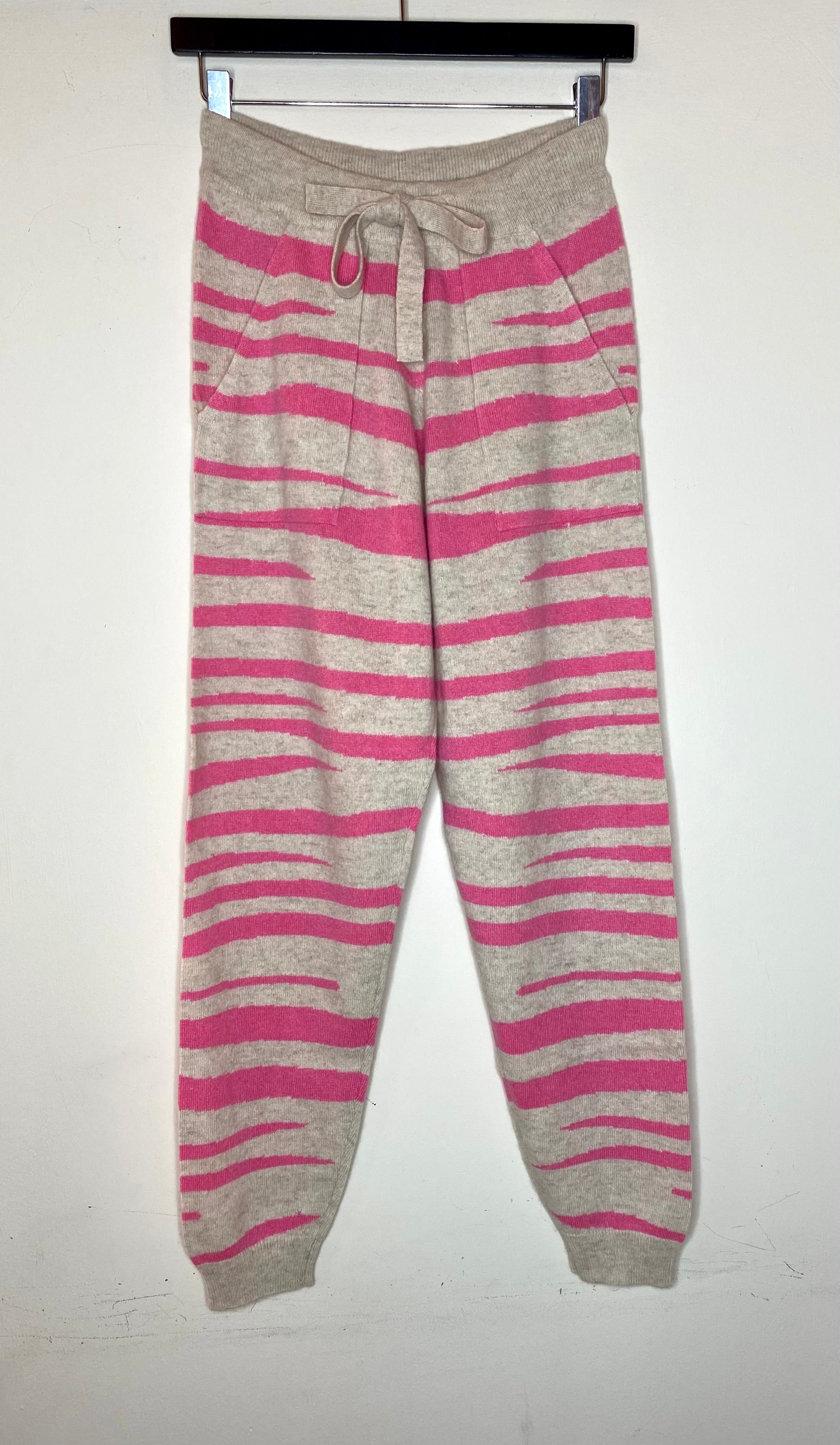 Jumper 1234 joggers in cashmere with front pockets. Comes in beige and pink tiger pattern.