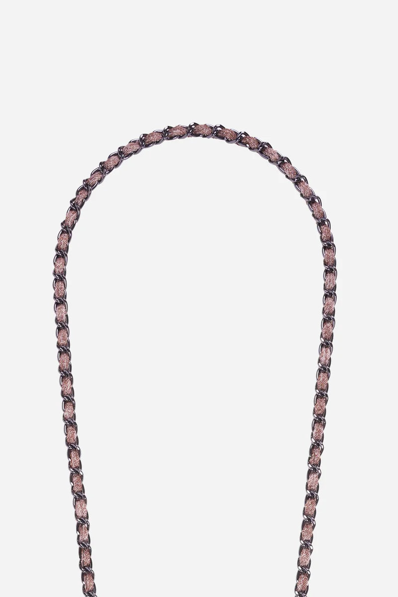 The Cali Black / Brown Denim phone chain, in braided brown denim and black metal, 120 cm long, clips onto one of our ring cases or adapter with its metallic black carabiners. It was designed in Marseille and handmade.